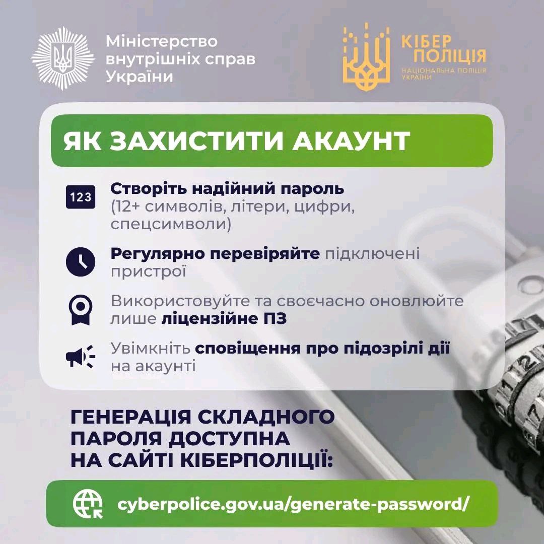 А для створення надійного пароля ви можете скористатися сервісом Кіберполіції з генерації паролів