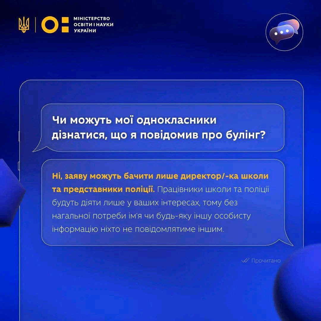 Згідно з дослідженнями МОН, понад 53% учнів коли-небудь стикалися з булінгом у школі, але лише половина з них повідомила про це батькам чи вчителям. Найчастіше діти бояться розповісти про проблеми через страх осуду чи погіршення ситуації.