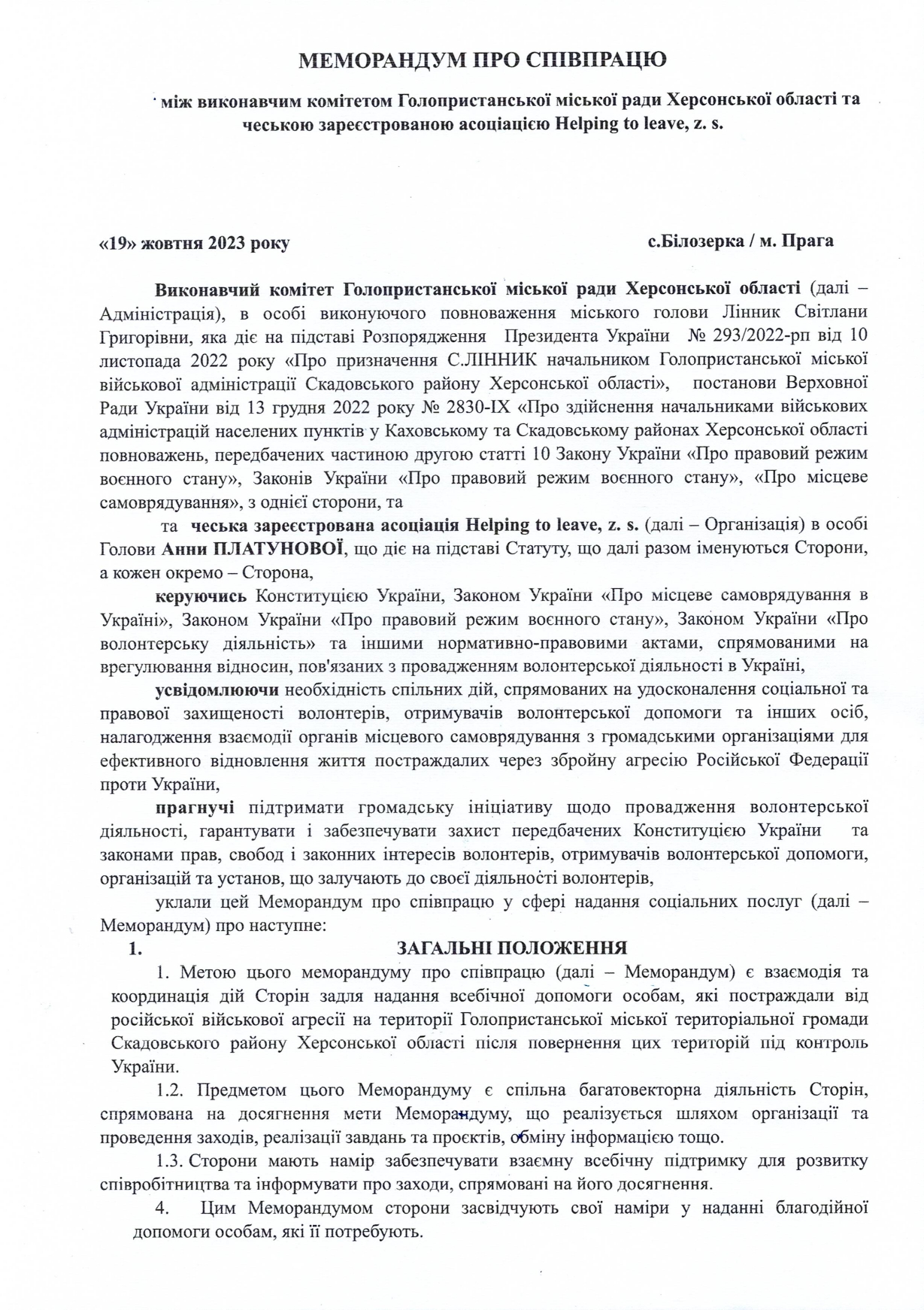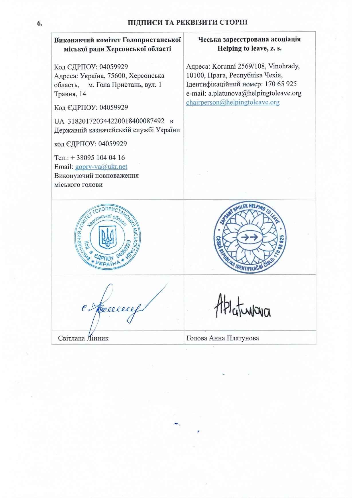 Меморандум про співпрацю з чеською зареєстроваю асоціацією Helping, z.s