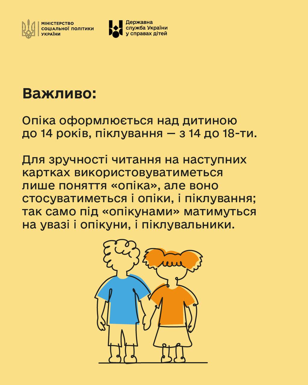 Важливо: для зручності читання на картках використовується лише поняття “опіка”, але воно стосується і опіки, і піклування; так само під “опікунами” маються на увазі і опікуни, і піклувальники.