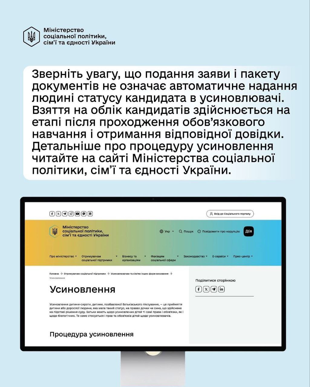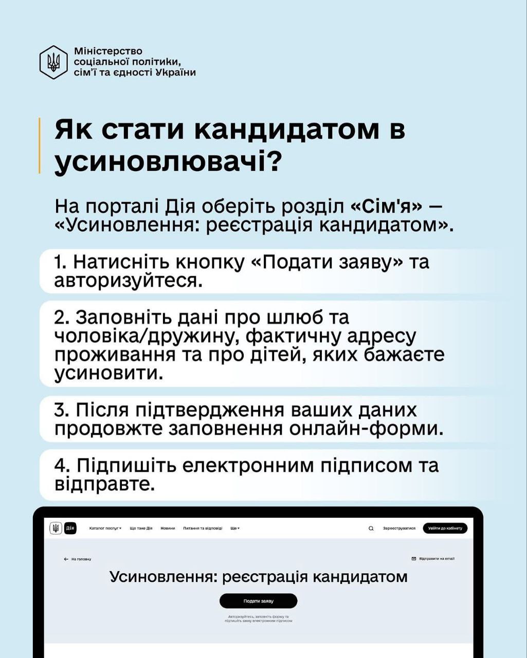 Державою впроваджуються заходи, спрямовані на забезпечення прозорості та доступності процедури усиновлення для громадян, які мають бажання відкрити своє серце та прийняти дитину у родину.