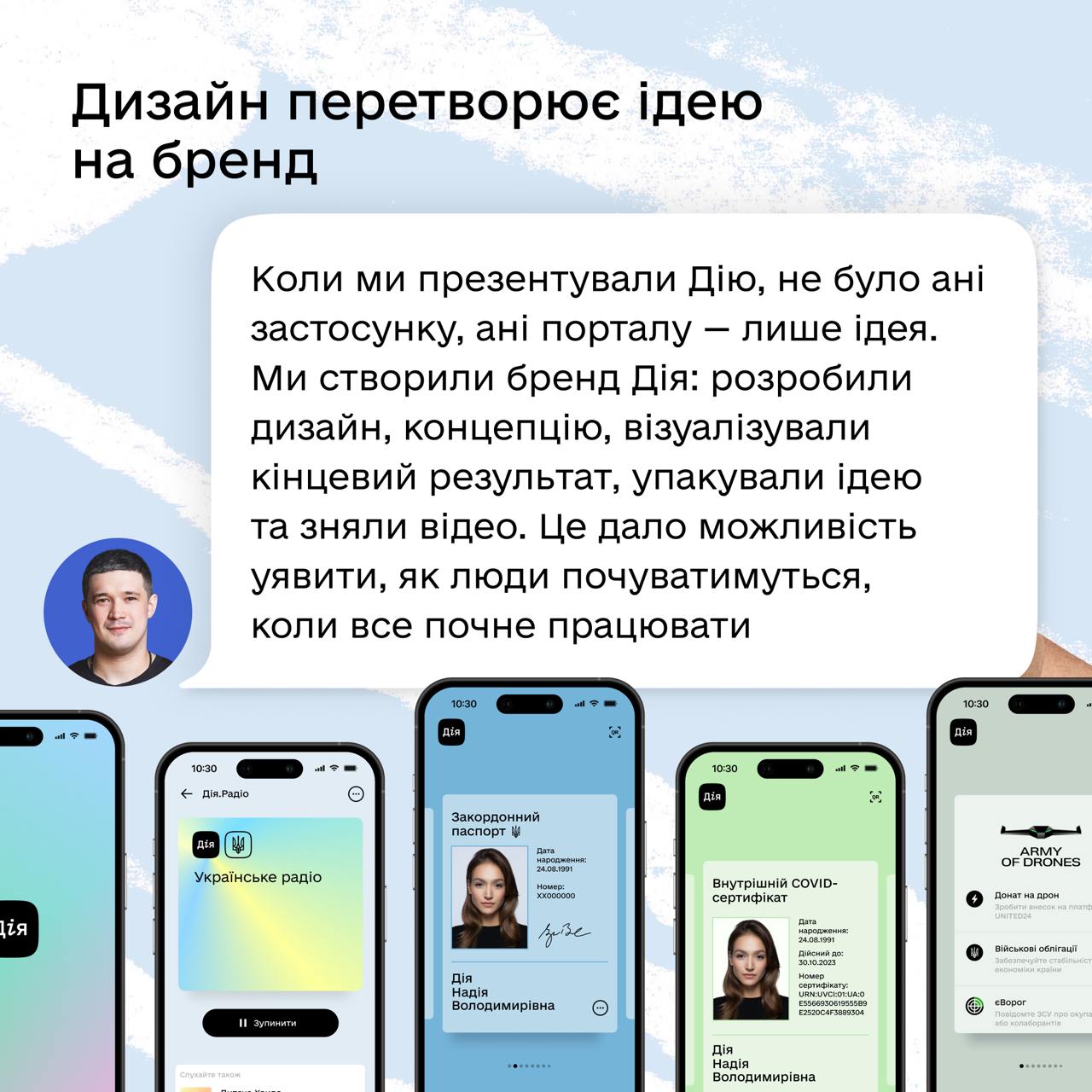 Коли презентували бренд Дії, самої Дії ще навіть не існувало, але класний дизайн допоміг пройти шлях від ідеї до застосунку, яким користується 20+ млн користувачів.