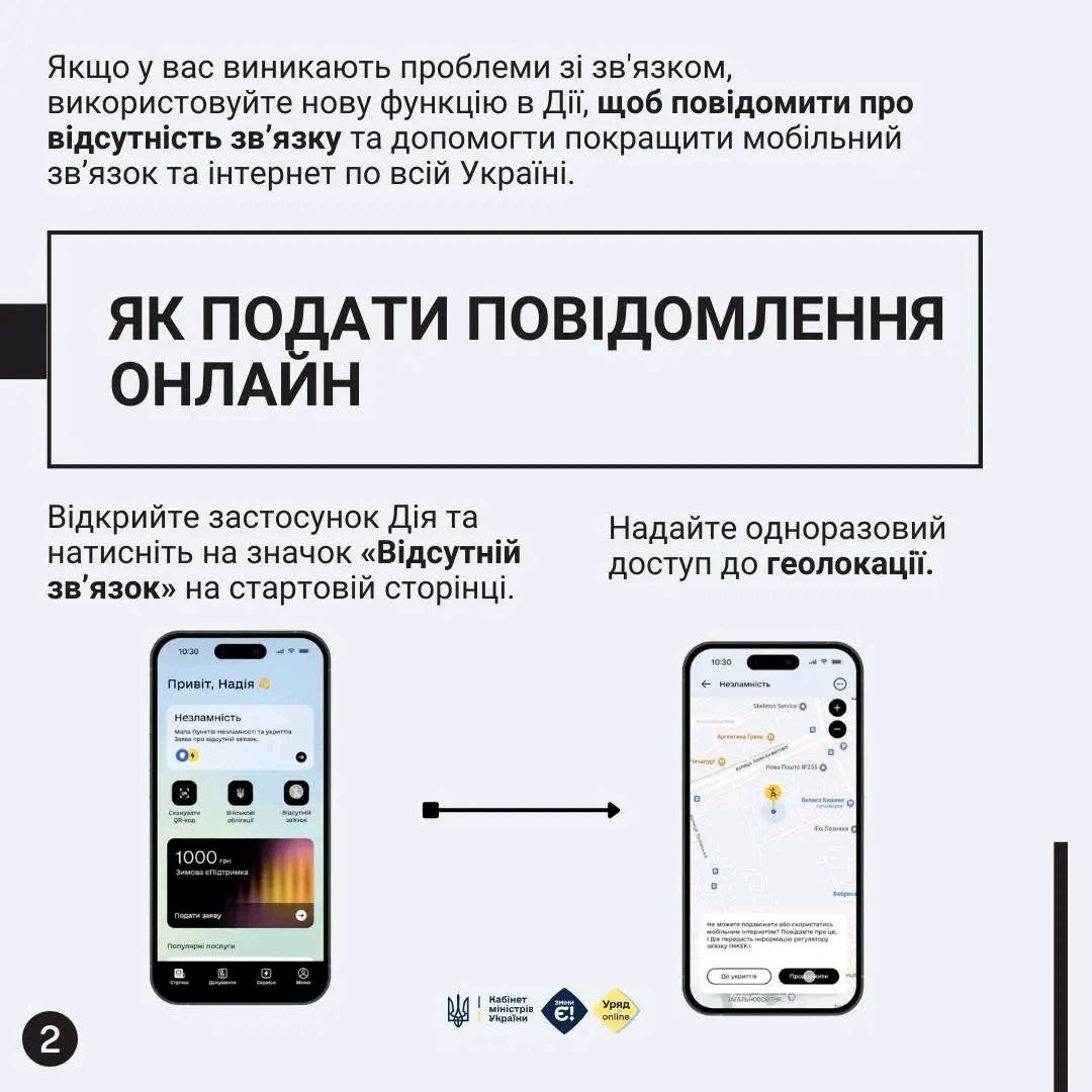 У застосунку Дія можна повідомити про відсутність мобільного зв’язку чи інтернету