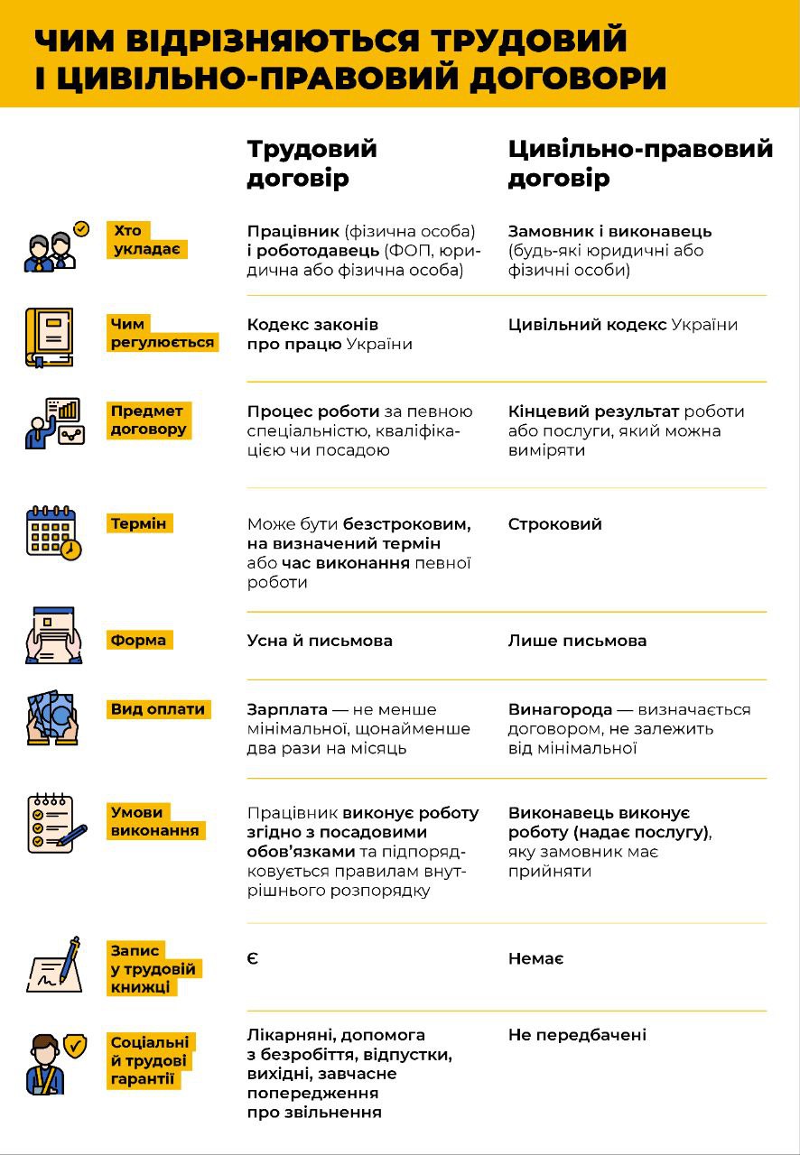 Докладніше про різницю між трудовим і цивільно-правовим договорами дивіться в інфографіці.