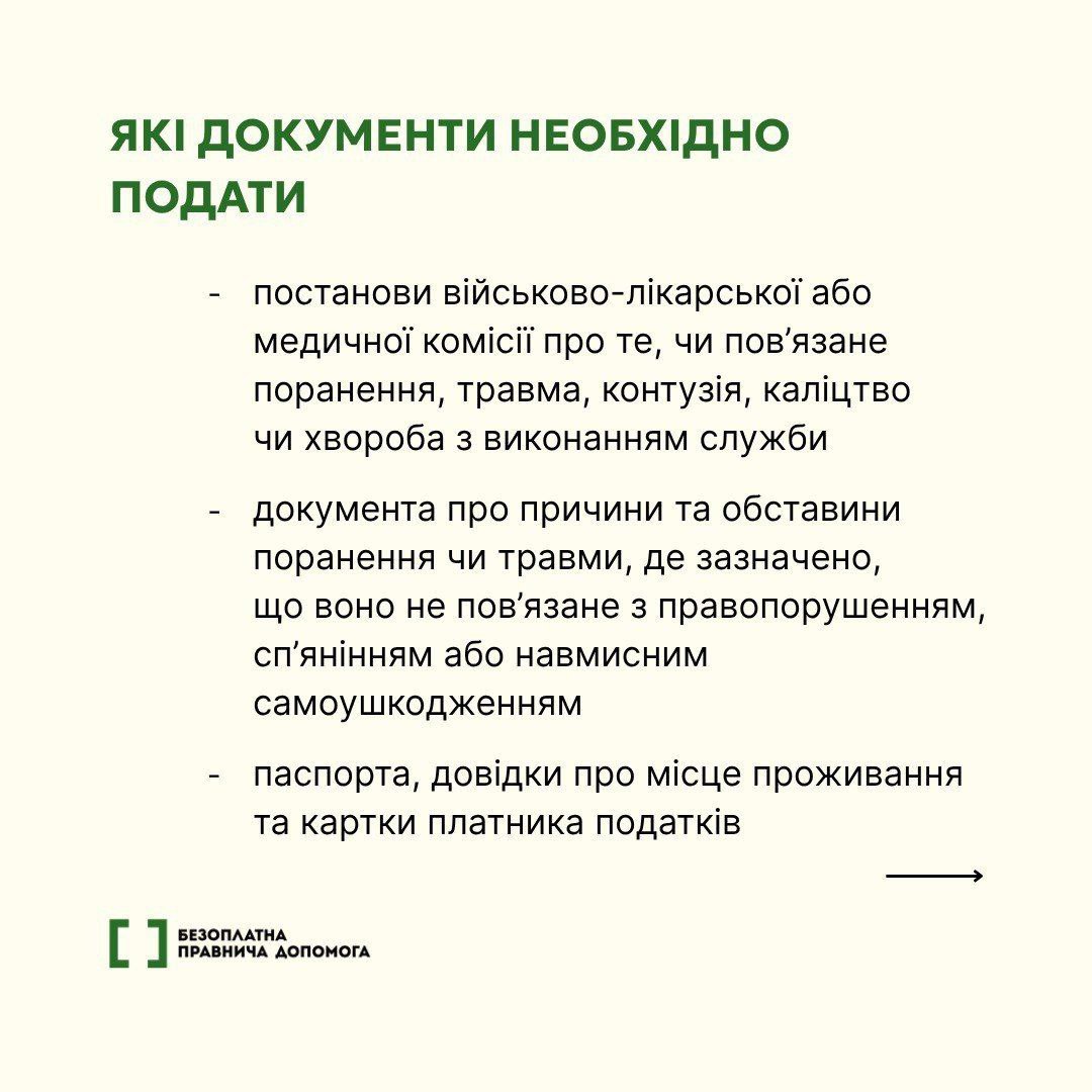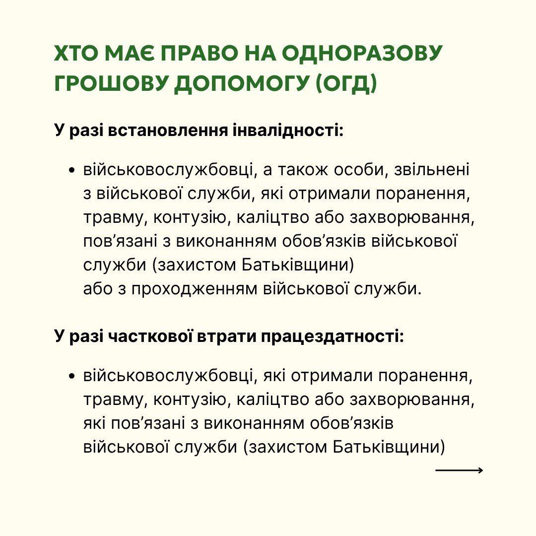 Військовослужбовці, які отримали поранення, травму чи захворювання під час служби, мають право на одноразову грошову допомогу від держави