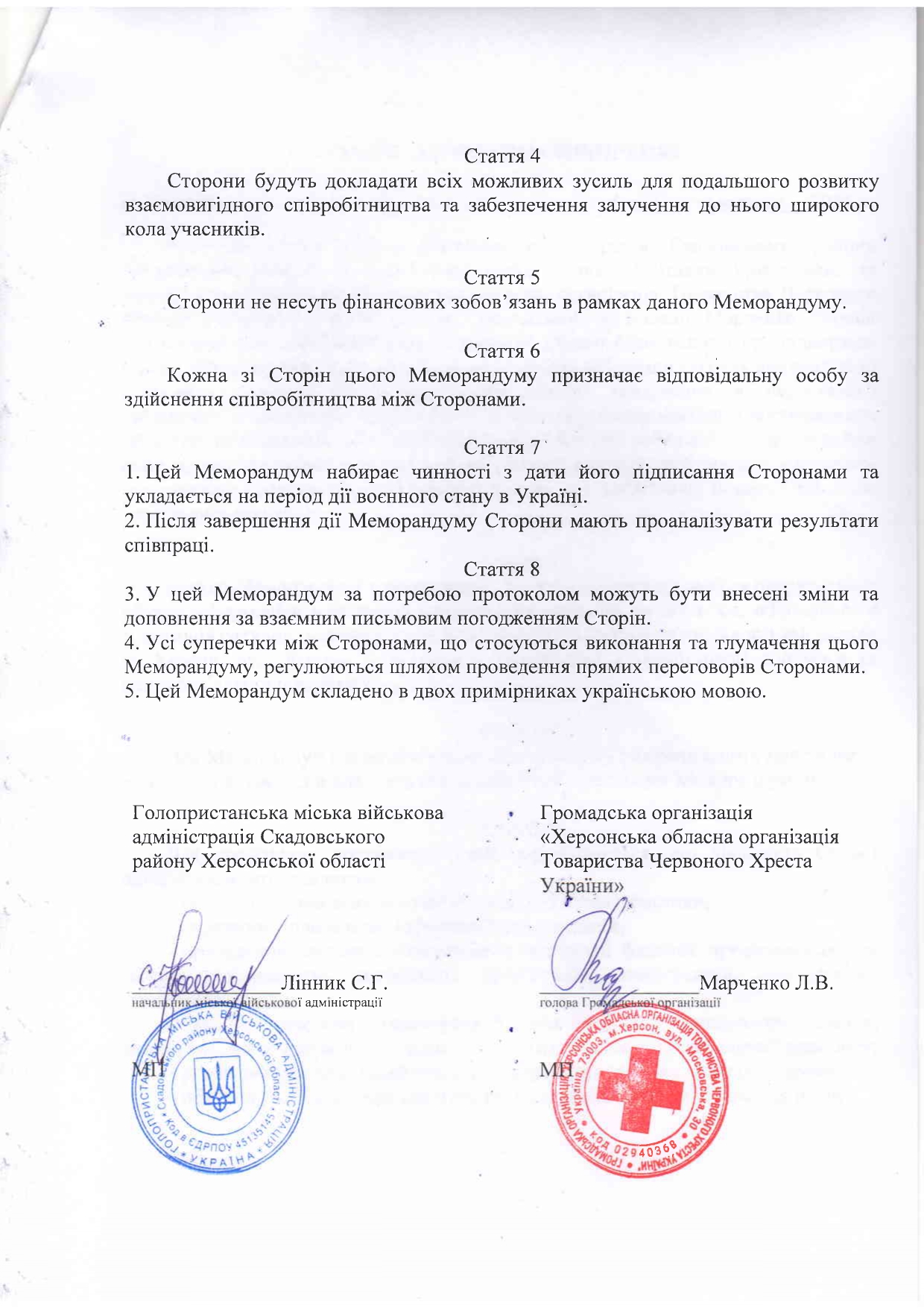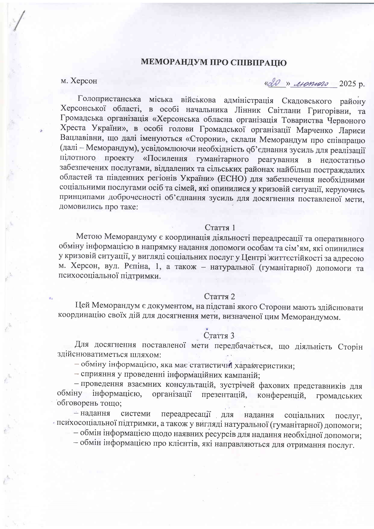 Меморандум про співпрацю з ГО "Херсонською обласною організацією Товариства Червоного Хреста України"
