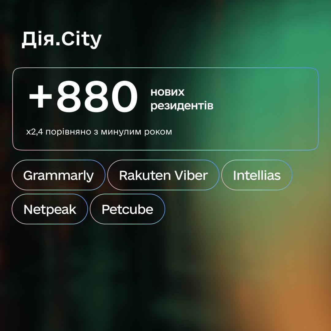 До Дія.City приєдналися 880+ топових технологічних компаній — Grammarly, Rakuten Viber, Petcube. А Президент підписав закон, який спрощує умови входу до Дія.City для стартапів та посилює відповідальність компаній за зв’язки з рф.