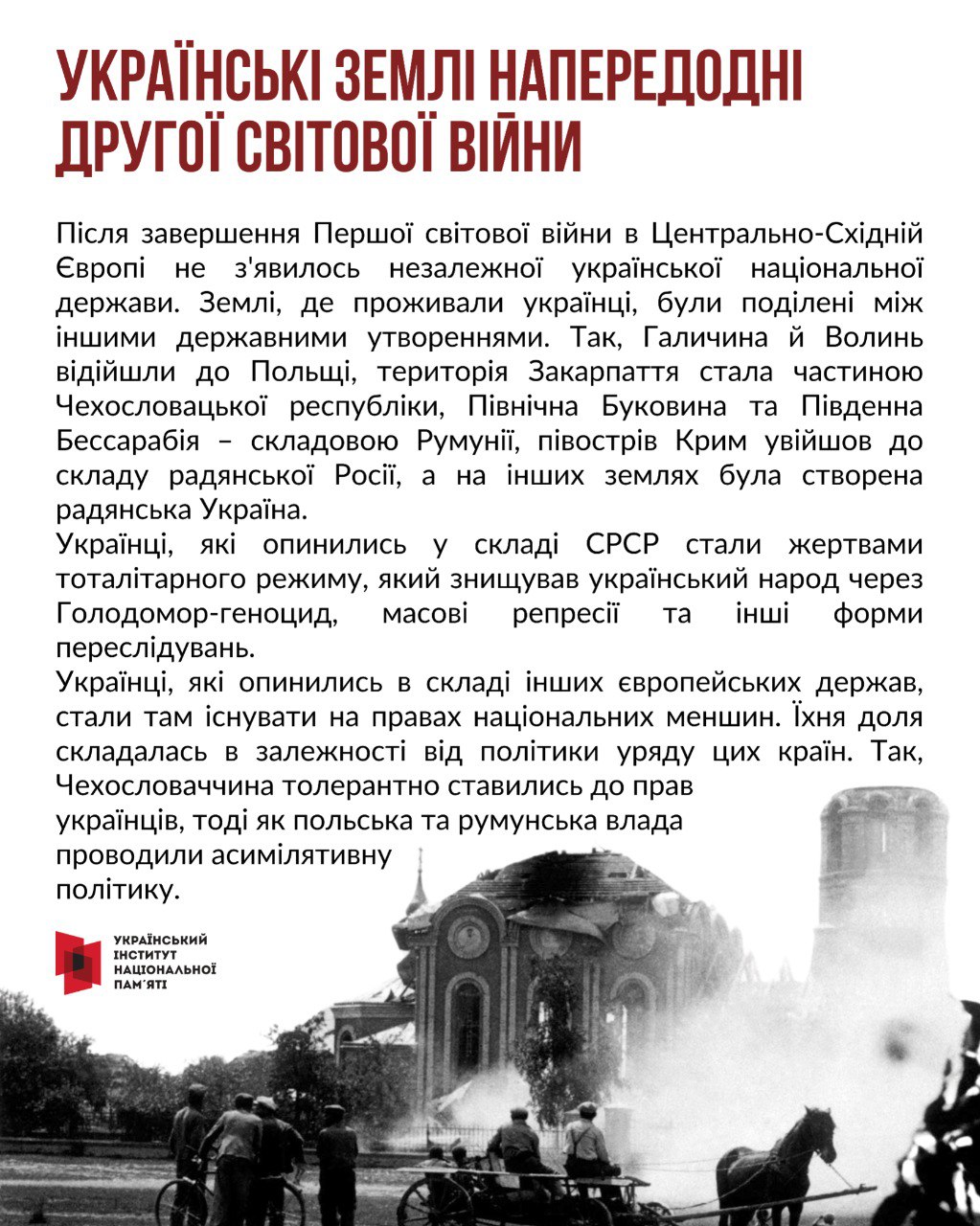 Українці в міжвоєнний період ХХ століття були найбільшою в Європі бездержавною нацією. Війна розпочалася 1 вересня 1939 року з нападу нацистської Німеччини на Польщу. Тоді ж вона зачепила частину українських територій і тамтешнього населення – німецька військова авіація бомбардувала Львів та інші західноукраїнські міста. Від 22 червня 1941-го, після вторгнення військ Німеччини та її союзників на територію СРСР, уся Україна стала ареною запеклих бойових дій. 22 липня 1942 року українські терени повністю окупувала нацистська Німеччина та її союзники.