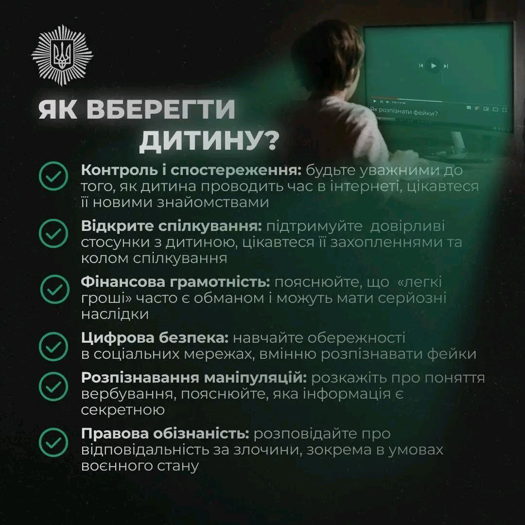 Ворожі спецслужби продовжують активно працювати над вербуванням українців у соцмережах, і ризику впливу зазнають навіть діти. Їх легко ввести в оману гучними обіцянками «легкого заробітку» чи нереалістичних вигод.
