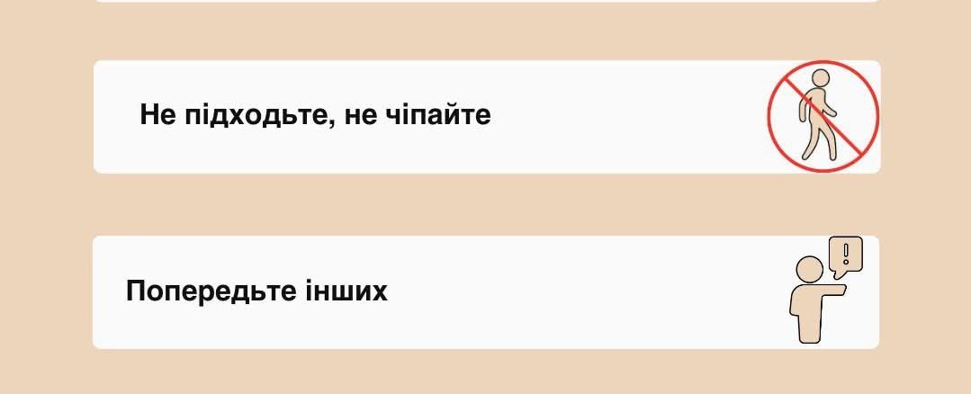 - Повідомте про знахідку рятувальників чи правоохоронців за номером 101 або 102.