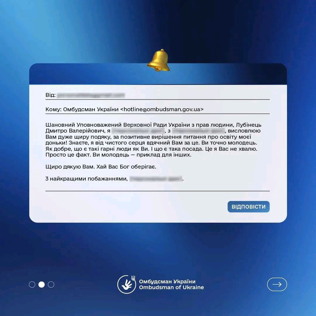 Мета нашої інституції – це розвиток демократичної правової країни, де головною цінністю є людина. Тому ми надзвичайно вдячні за зворотний зв’язок від громадян, які до нас звертаються. Ваші слова надихають та дають ще більше мотивації та наснаги.