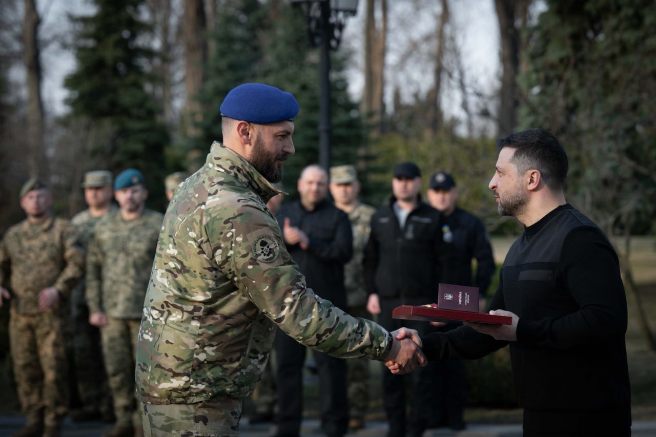 Учора, напередодні Дня Національної гвардії України, Президент Володимир Зеленський зустрівся з військовослужбовцями НГУ, привітав їх із 12-ю річницею створення Нацгвардії, відзначив державними нагородами та вручив командирам підрозділів стрічки почесної відзнаки «За мужність та відвагу» й стрічки почесних найменувань.