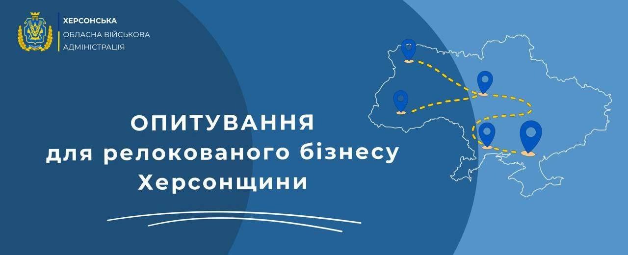 З метою підтримки підприємців Херсонщини, які внаслідок збройної агресії рф вимушено перемістилися в інші області, Херсонська обласна військова адміністрація проводить опитування суб’єктів господарювання щодо напрямків підтримки/потреб в умовах релокації (відновлення та/або провадження діяльності в інших регіонах України).