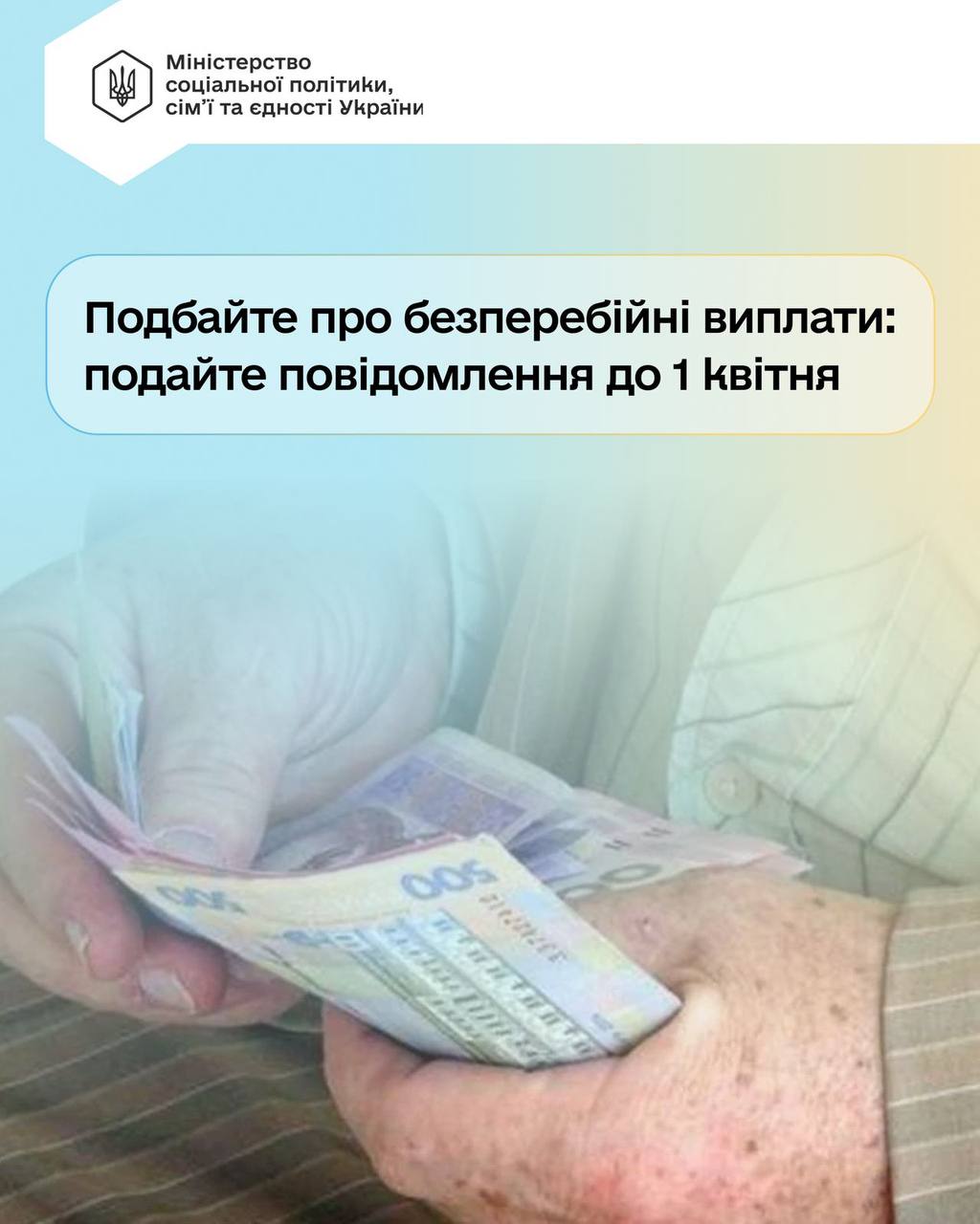 Мінсоцполітики нагадує: до 1 квітня частині пенсіонерів потрібно подати повідомлення про неотримання виплат від рф. Це важливо для подальшого нарахування української пенсії.