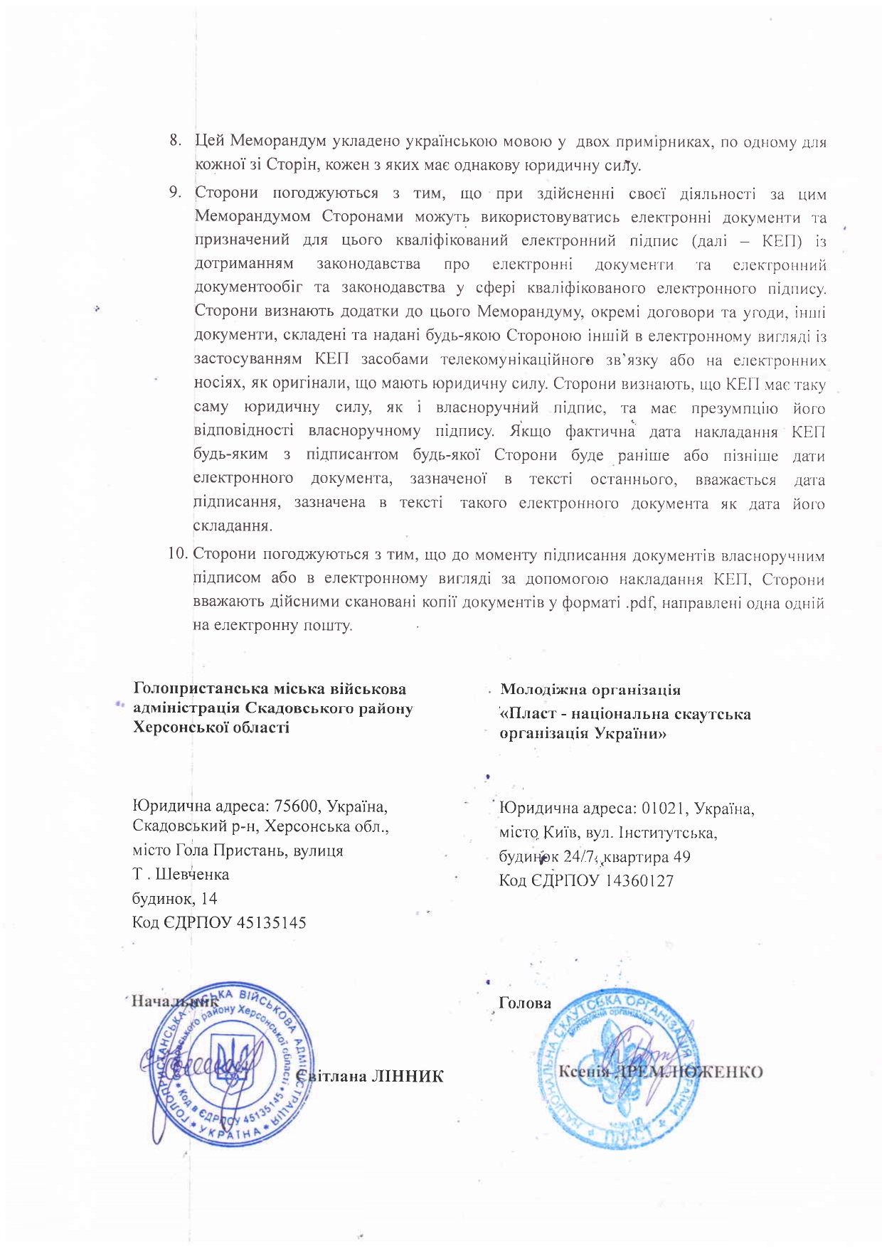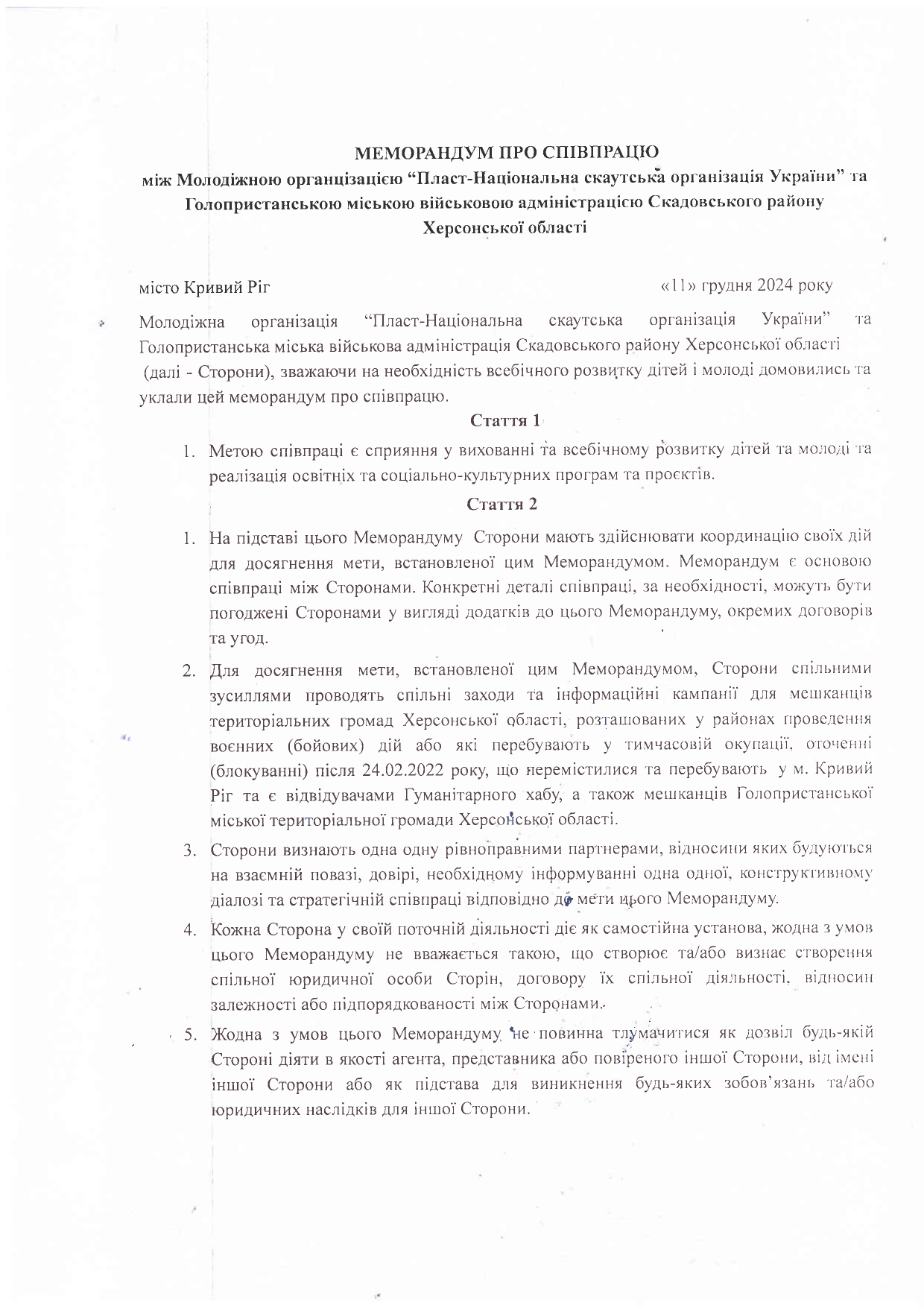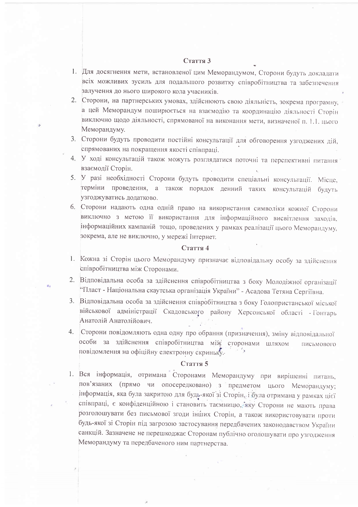 Мемарандум про співпрацю з "Пласт - Національна скаутська організація України"
