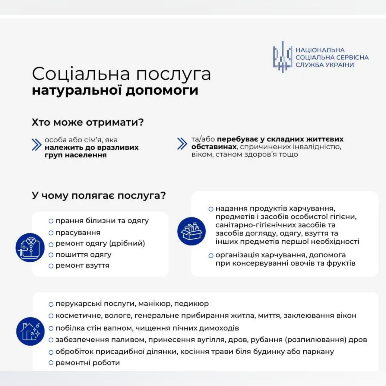 Соціальна послуга натуральної допомоги є важливою формою підтримки для осіб, які опинилися у складних життєвих обставинах або належать до вразливих груп населення.