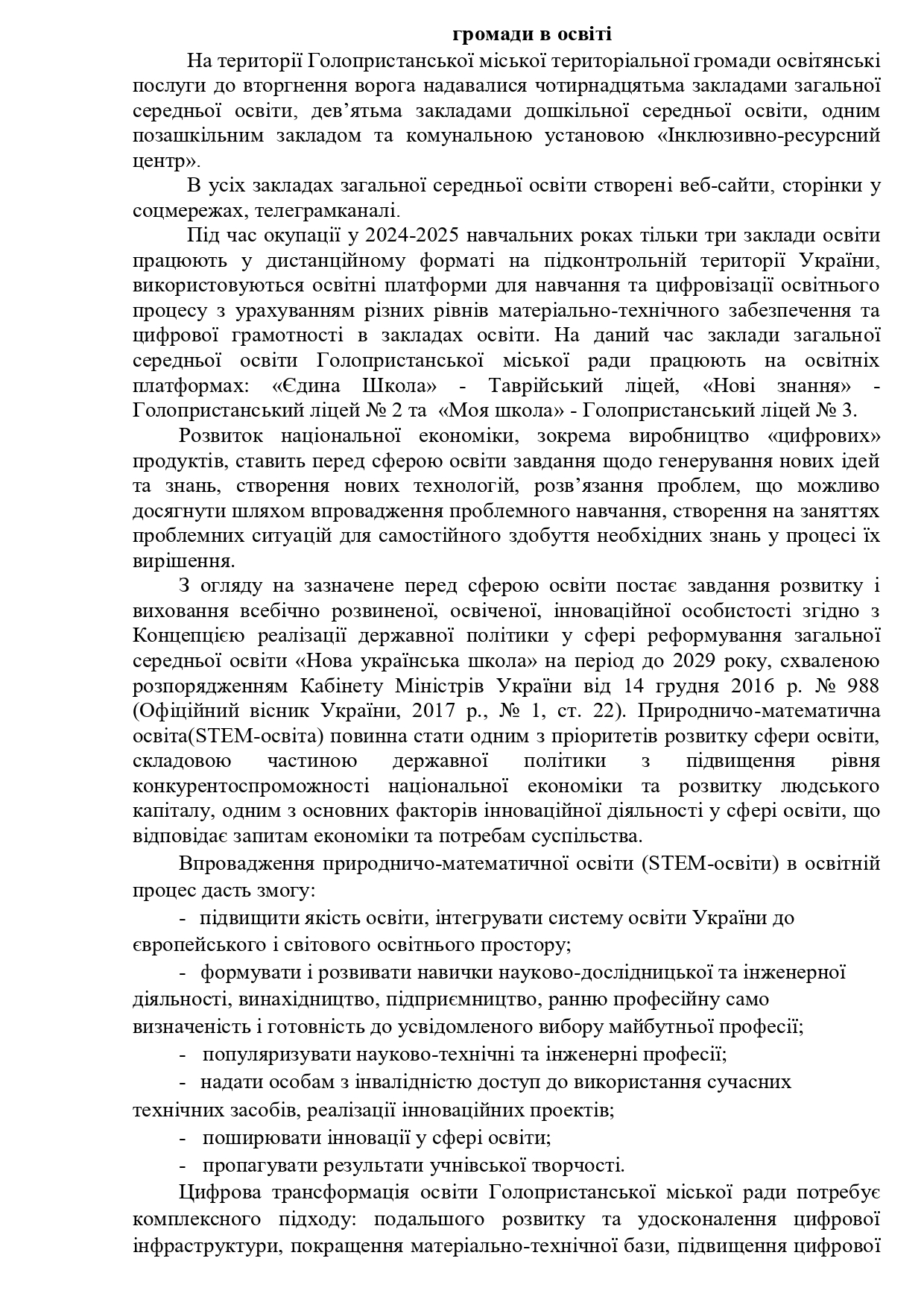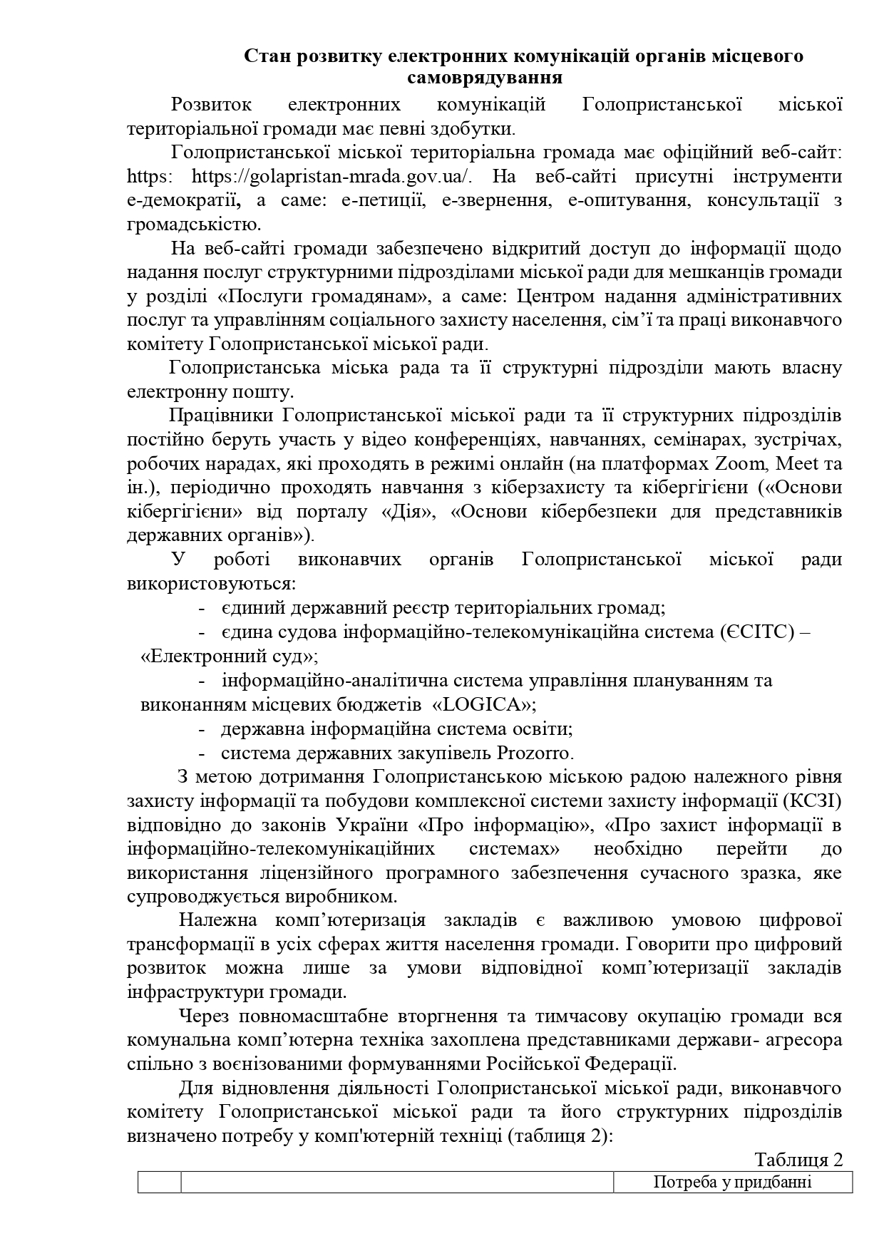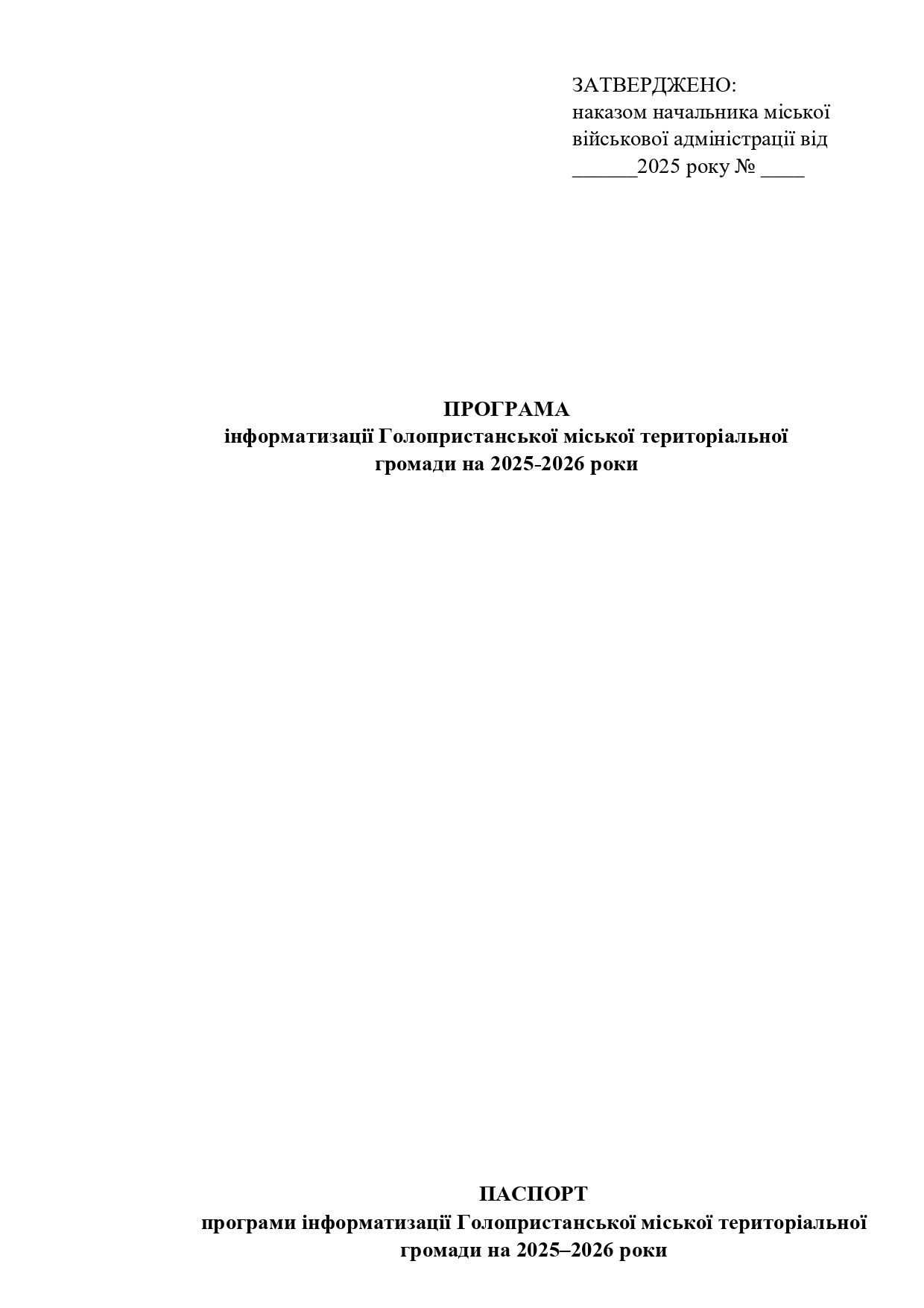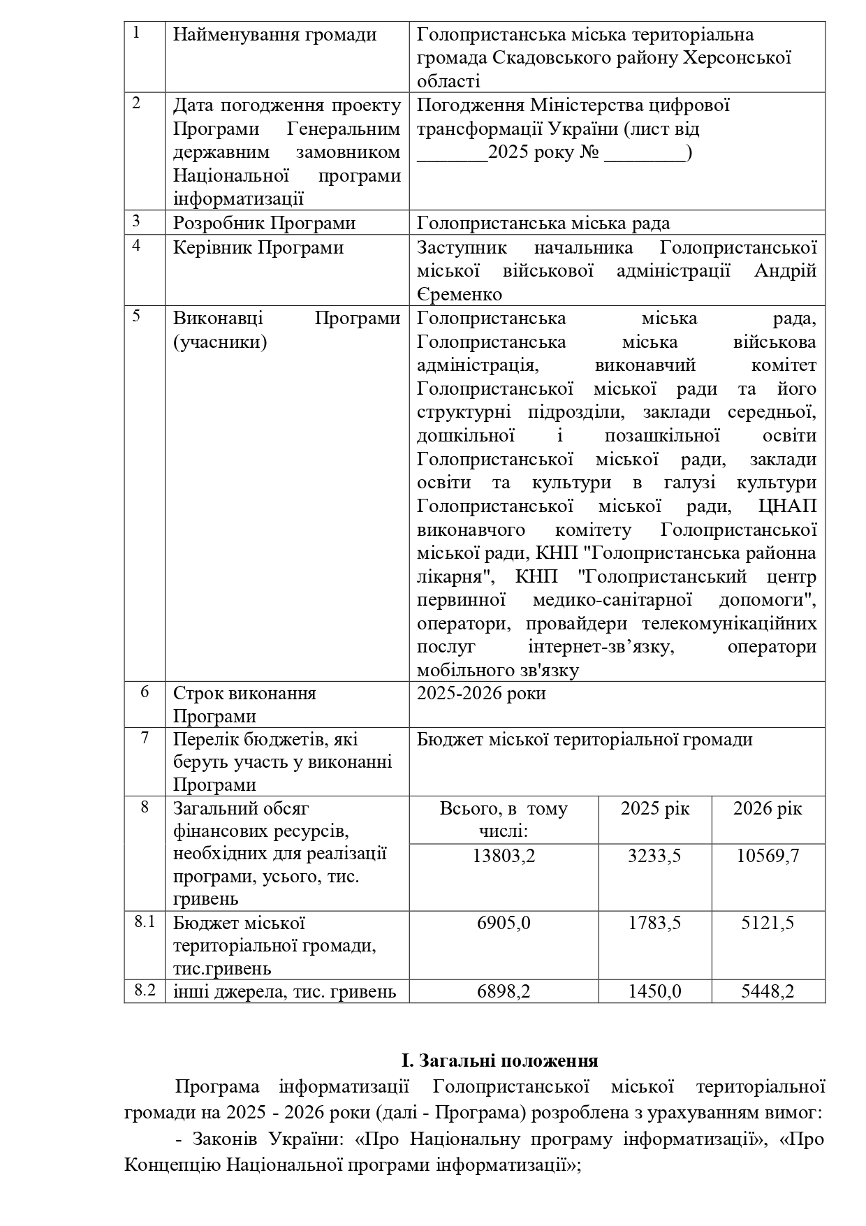 Повідомлення про початок роботи над проектом програми інформатизації Голопристанської міської територіальної громади на 2025-2026 роки