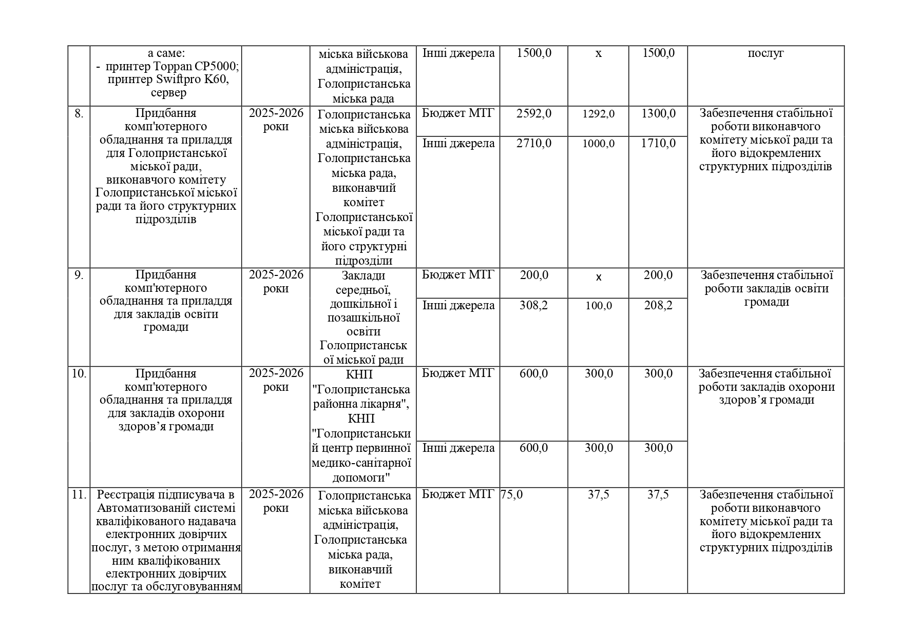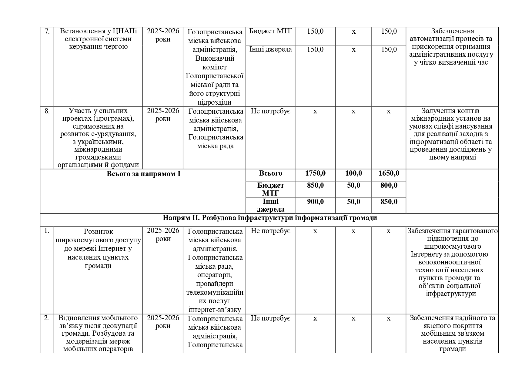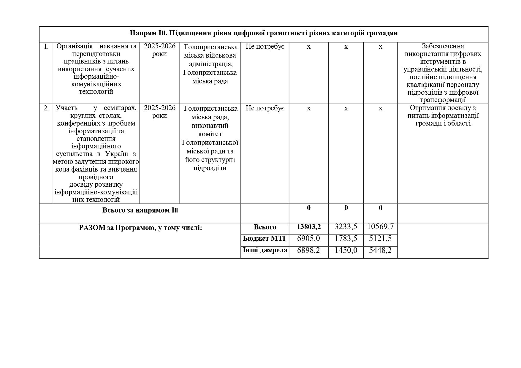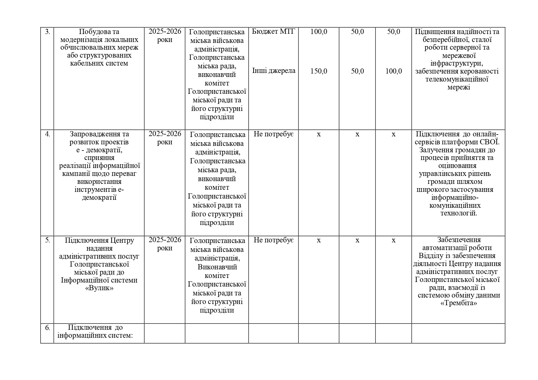 Громадськість в межах строку громадського обговорення може подати пропозиції до проекту програми інформатизації Голопристанської міської територіальної громади на 2025-2026 роки за формою: