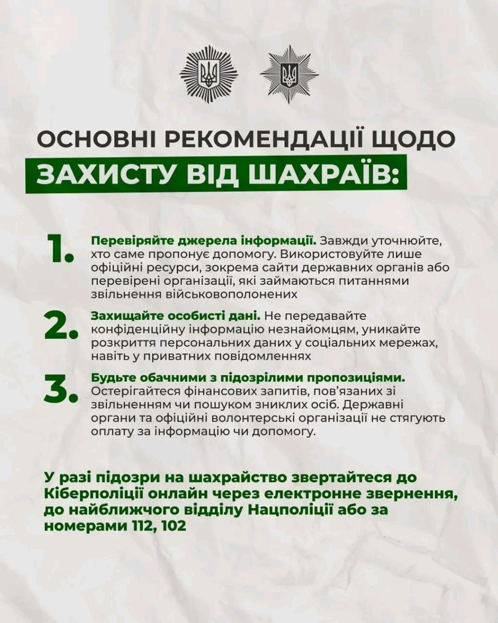У разі підозри на шахрайство звертайтеся в поліцію.