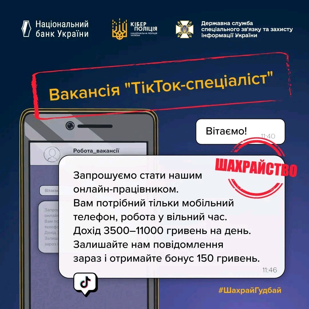 Більше про те, як захистити свої гроші, – на сайті #ШахрайГудбай https://promo.bank.gov.ua/stopfraud/.