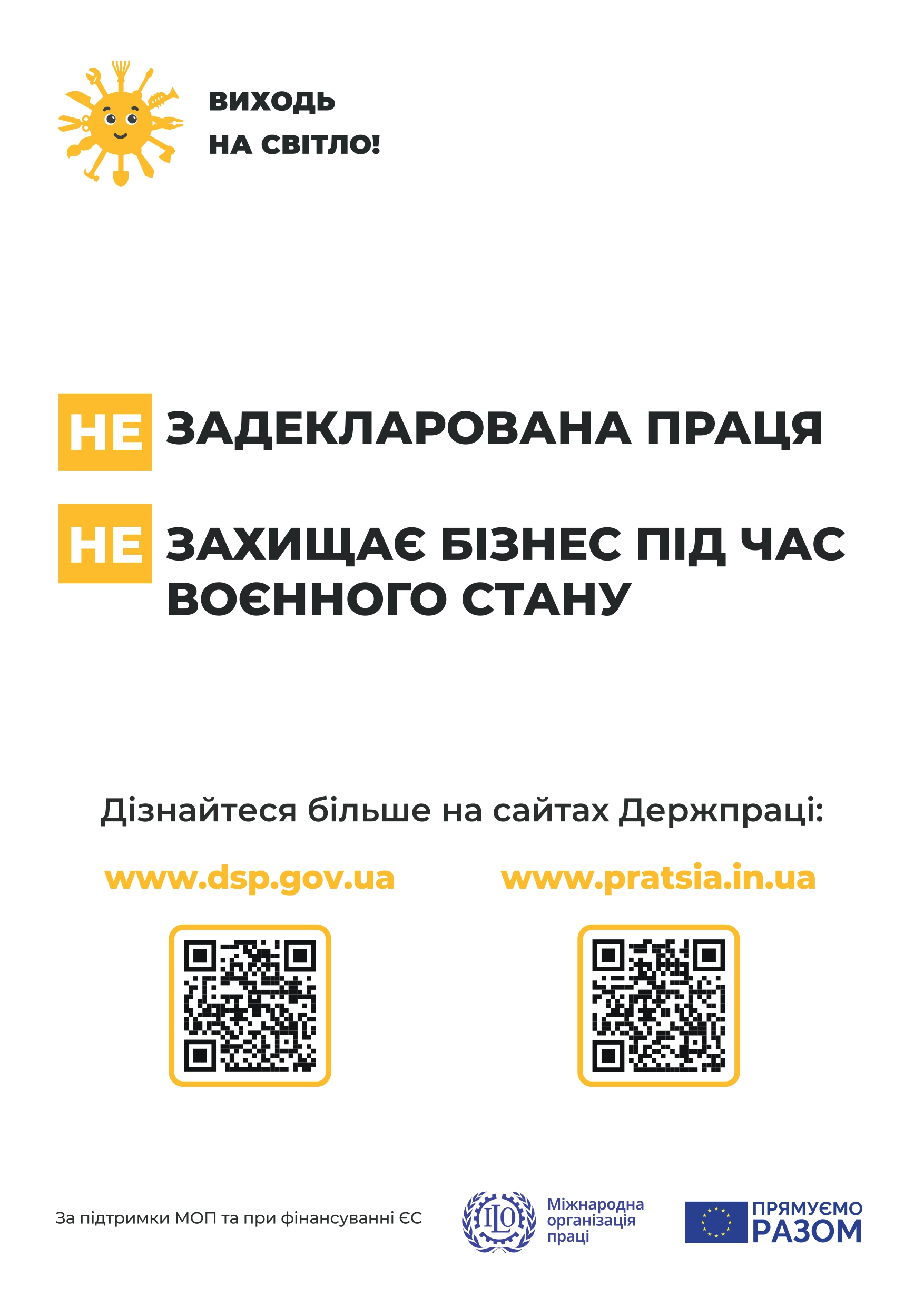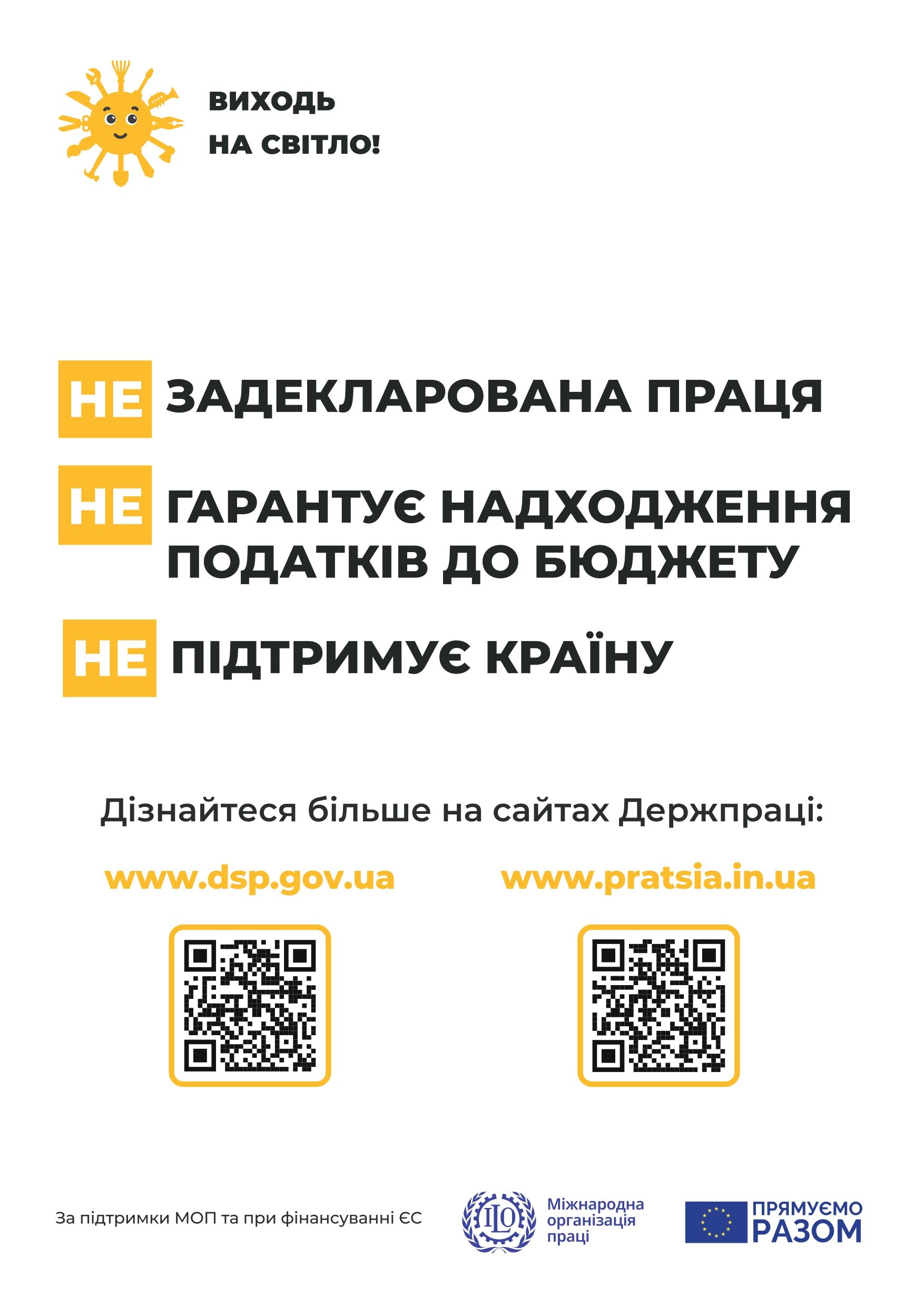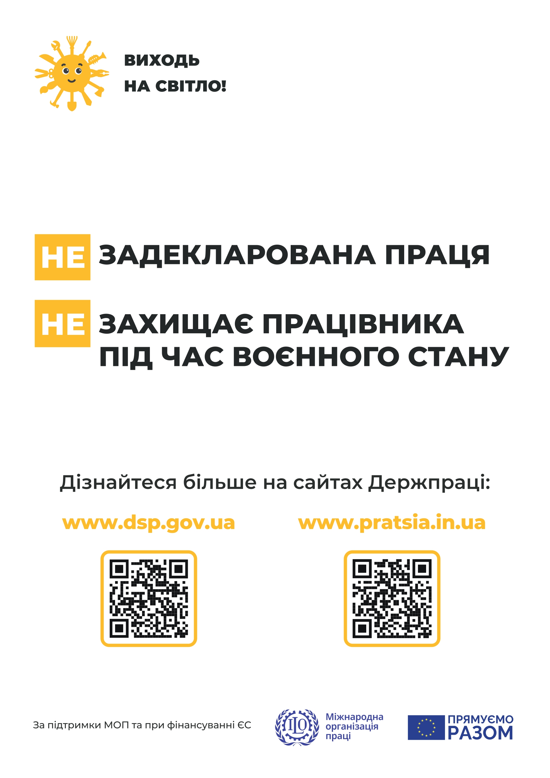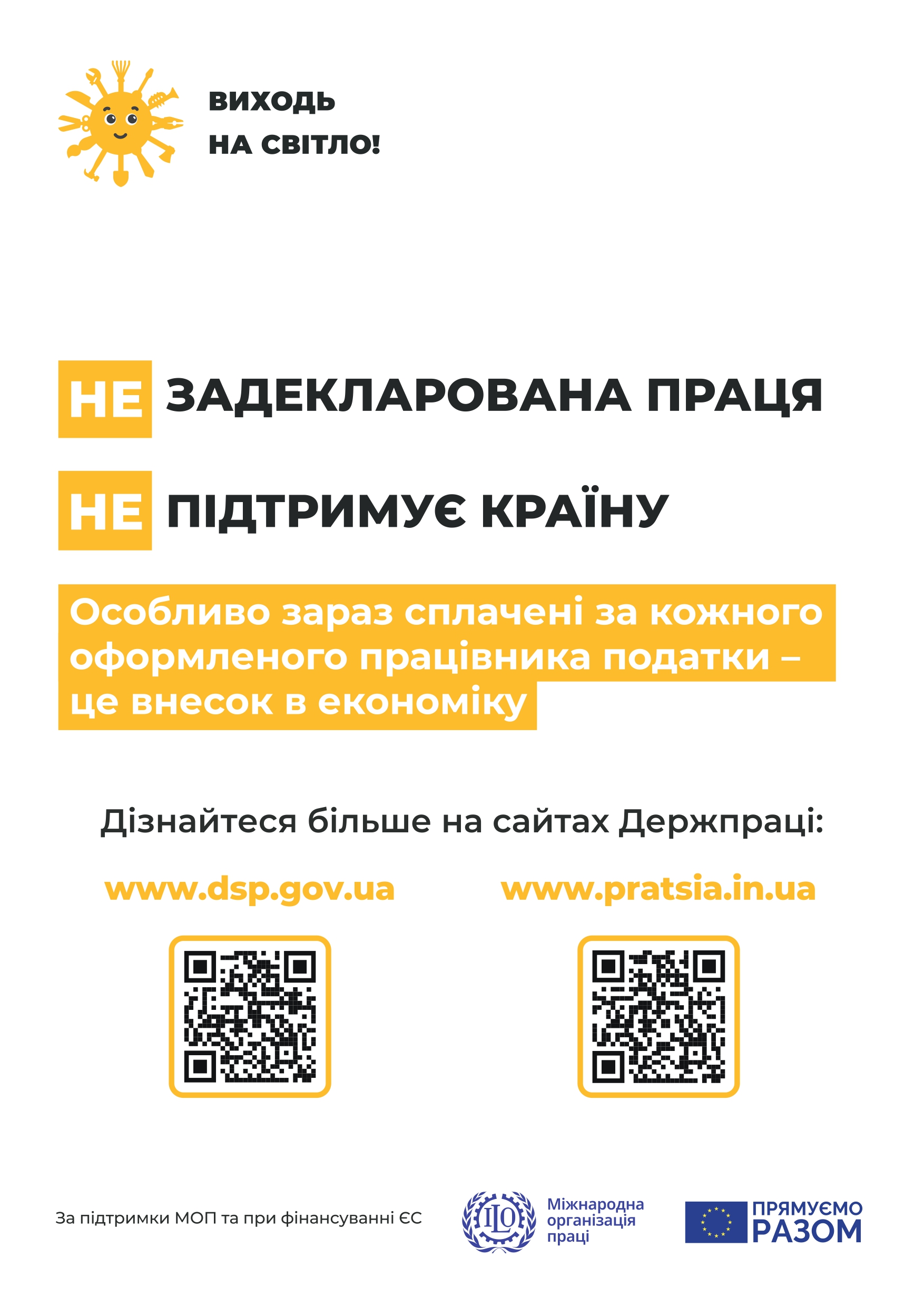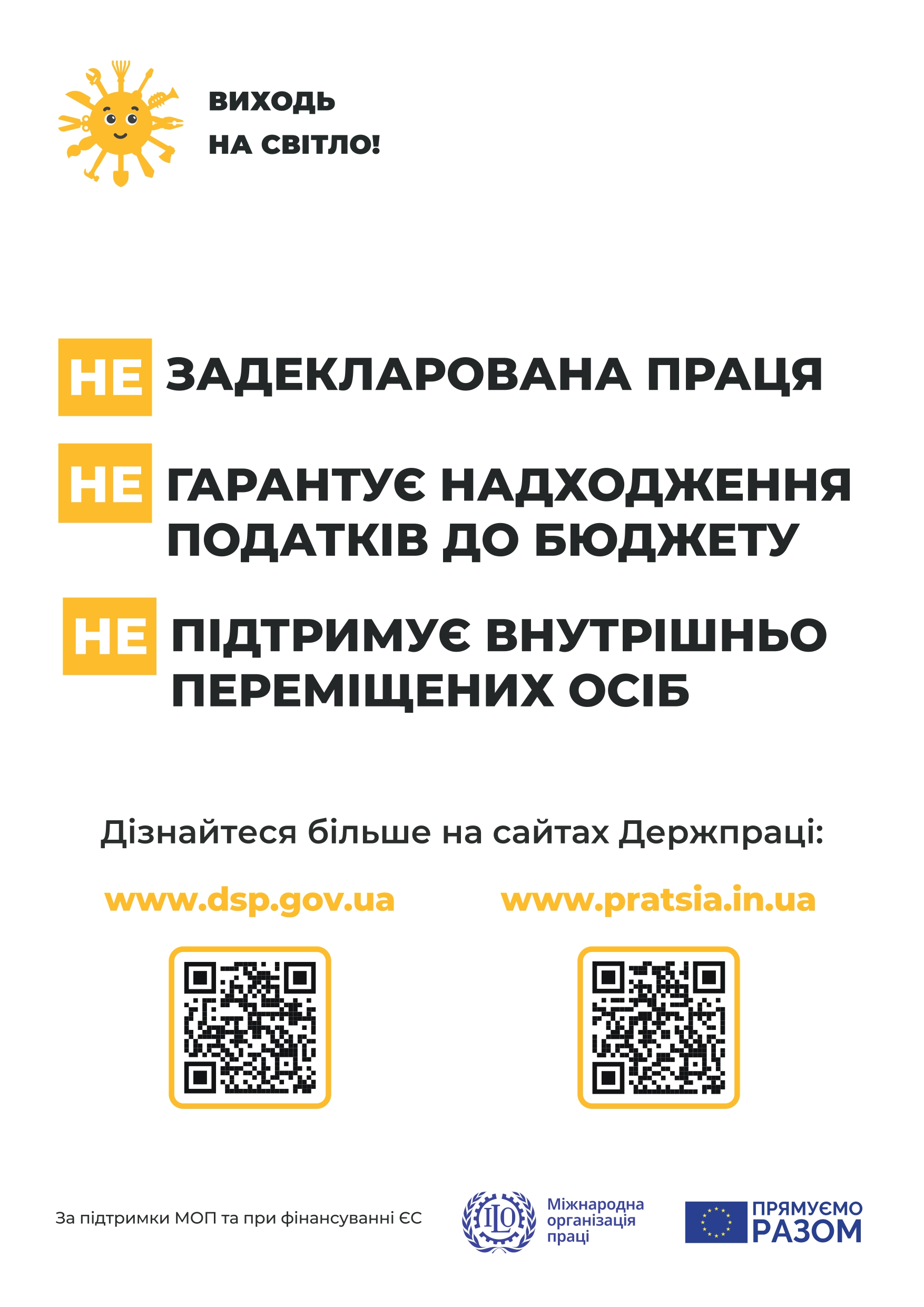 Інформаційна кампанія «Виходь на світло!» спрямовується на працівників і роботодавців, які продовжують працювати, але при цьому уникають належного оформлення трудових відносин та сплати податків.