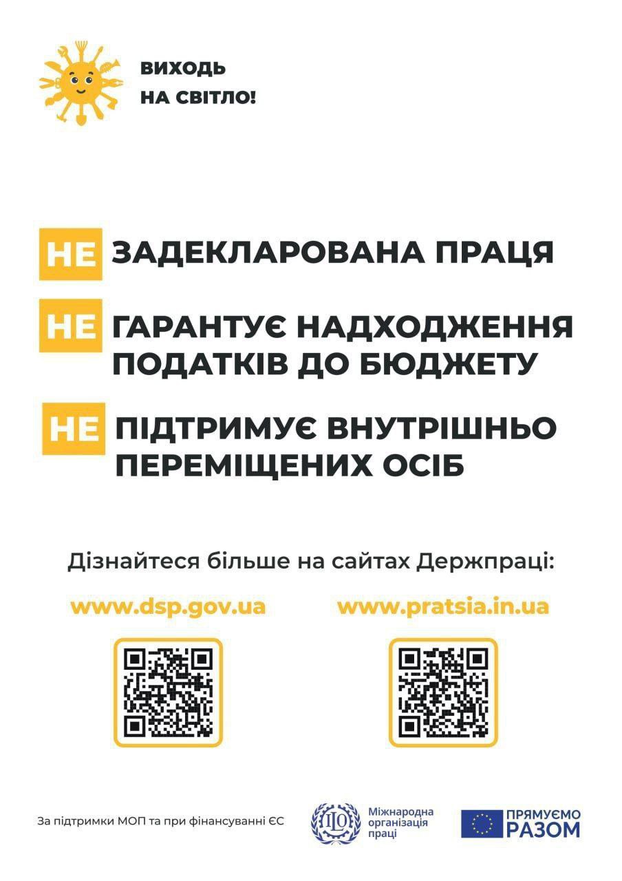 Інформаційна кампанія «Виходь на світло!» спрямовується на працівників і роботодавців, які продовжують працювати, але при цьому уникають належного оформлення трудових відносин та сплати податків.
