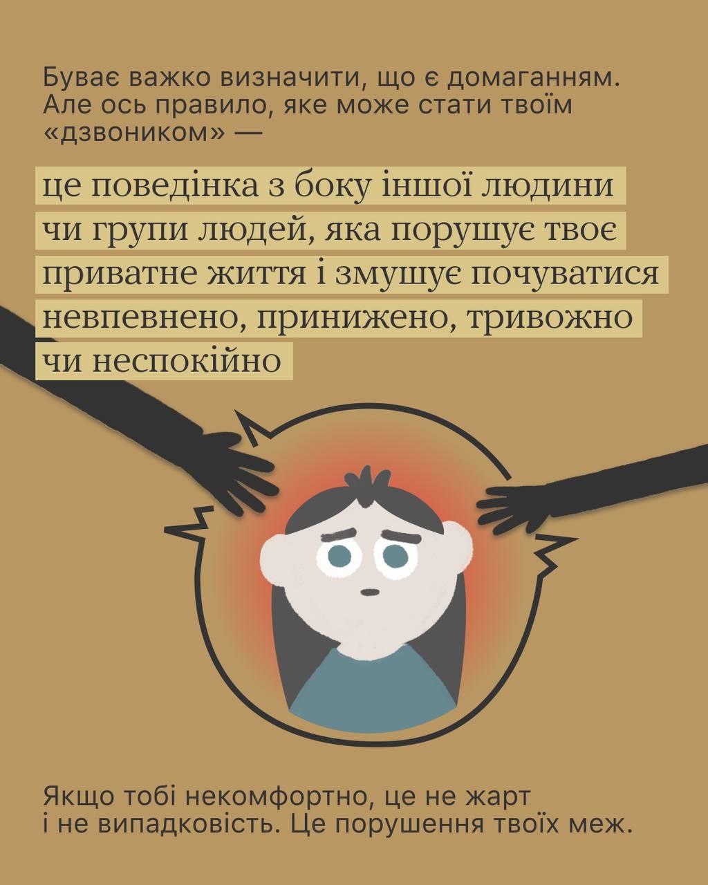 Бо сексуальні домагання — це не про флірт і компліменти. Це коли «просто жарт» може залишити слід на все життя. А ще це страх відмовити, бо можуть «вигнати» з універу, звільнити, зіпсувати репутацію, зганьбити.