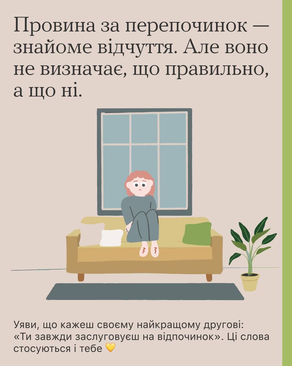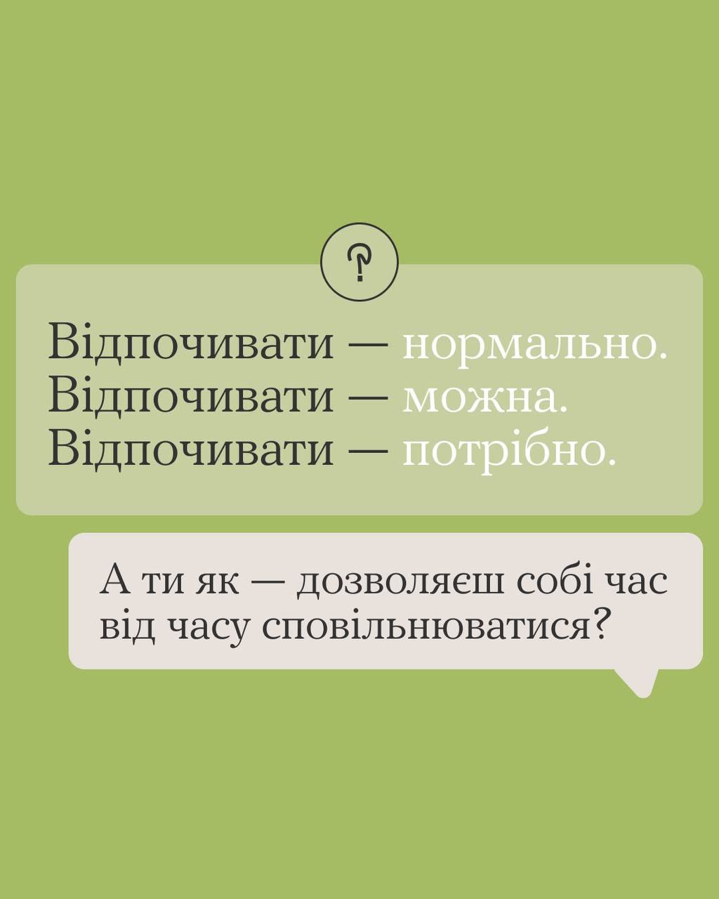 Збережи цей допис, щоб нагадувати собі: ти завжди маєш право на паузу, а відпочинок — це необхідність, яка робить тебе щасливішим/-ою.