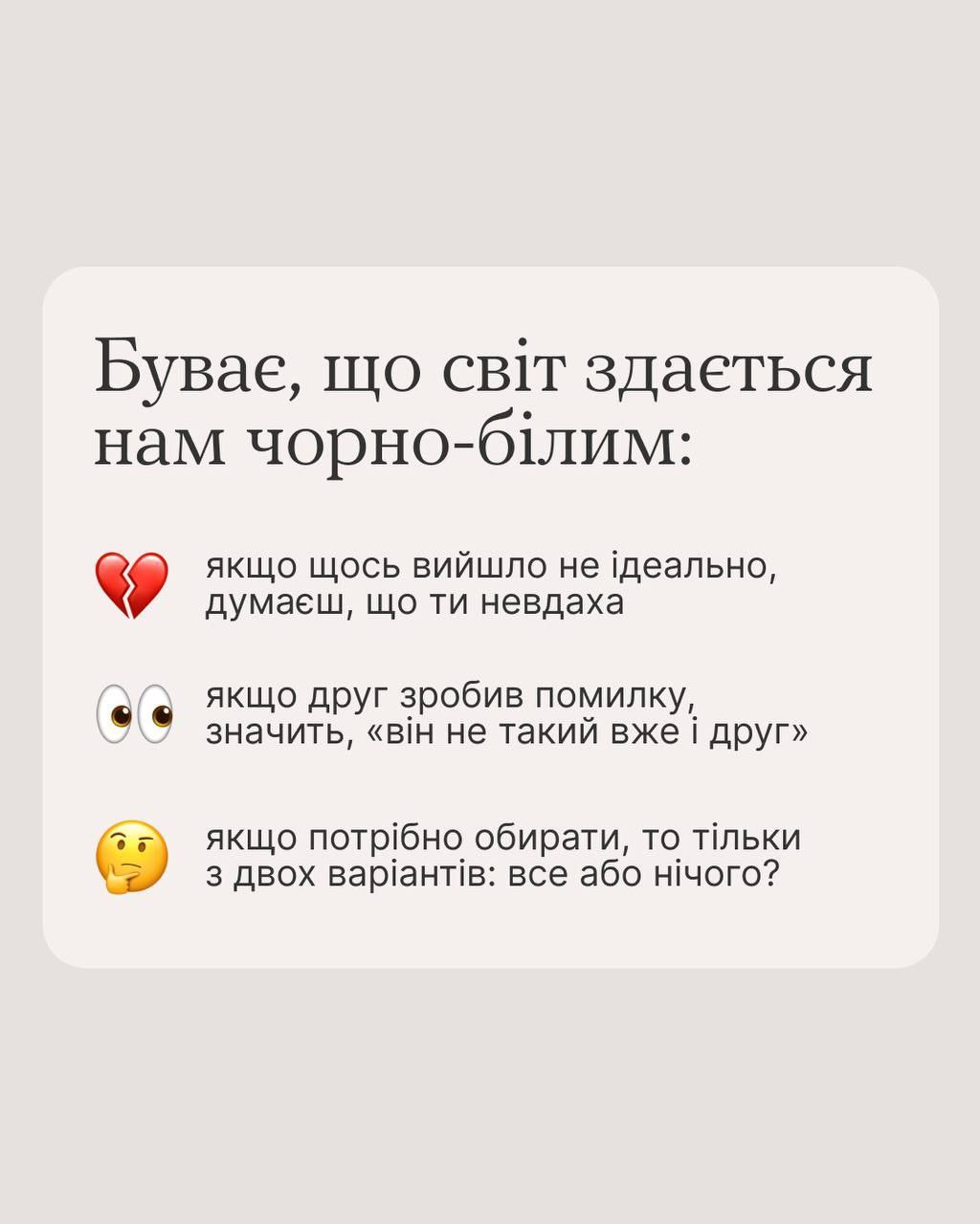 Але спіймай себе на думці: між ними є цілий спектр, і це не обовʼязково сірі кольори.
