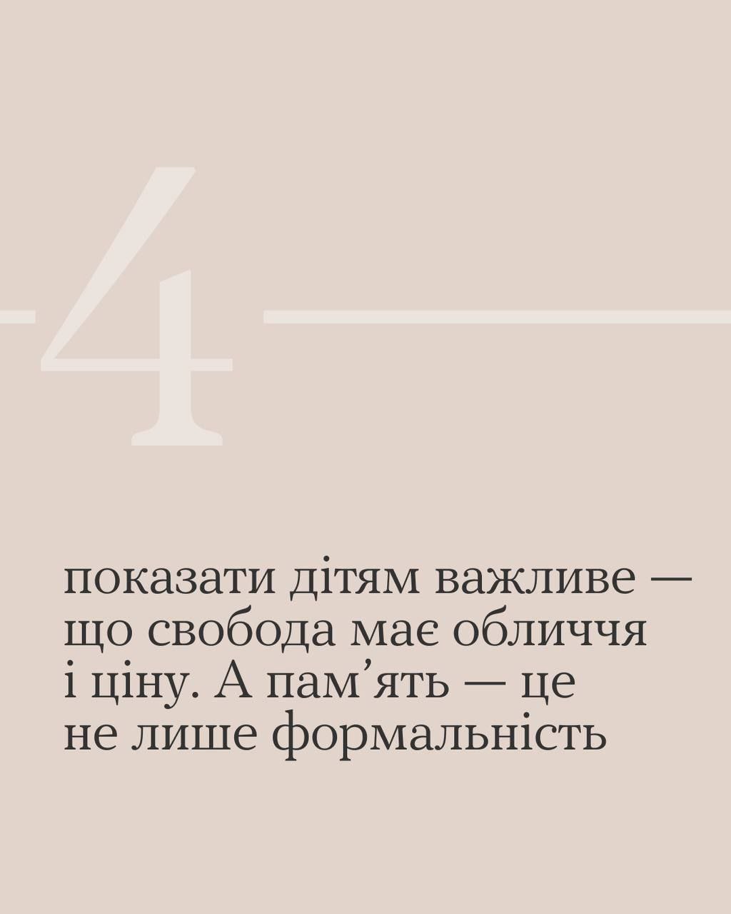 А ти зробиш одну маленьку та дуже цінну дію. Шануй себе і шануй тих, хто загинув.