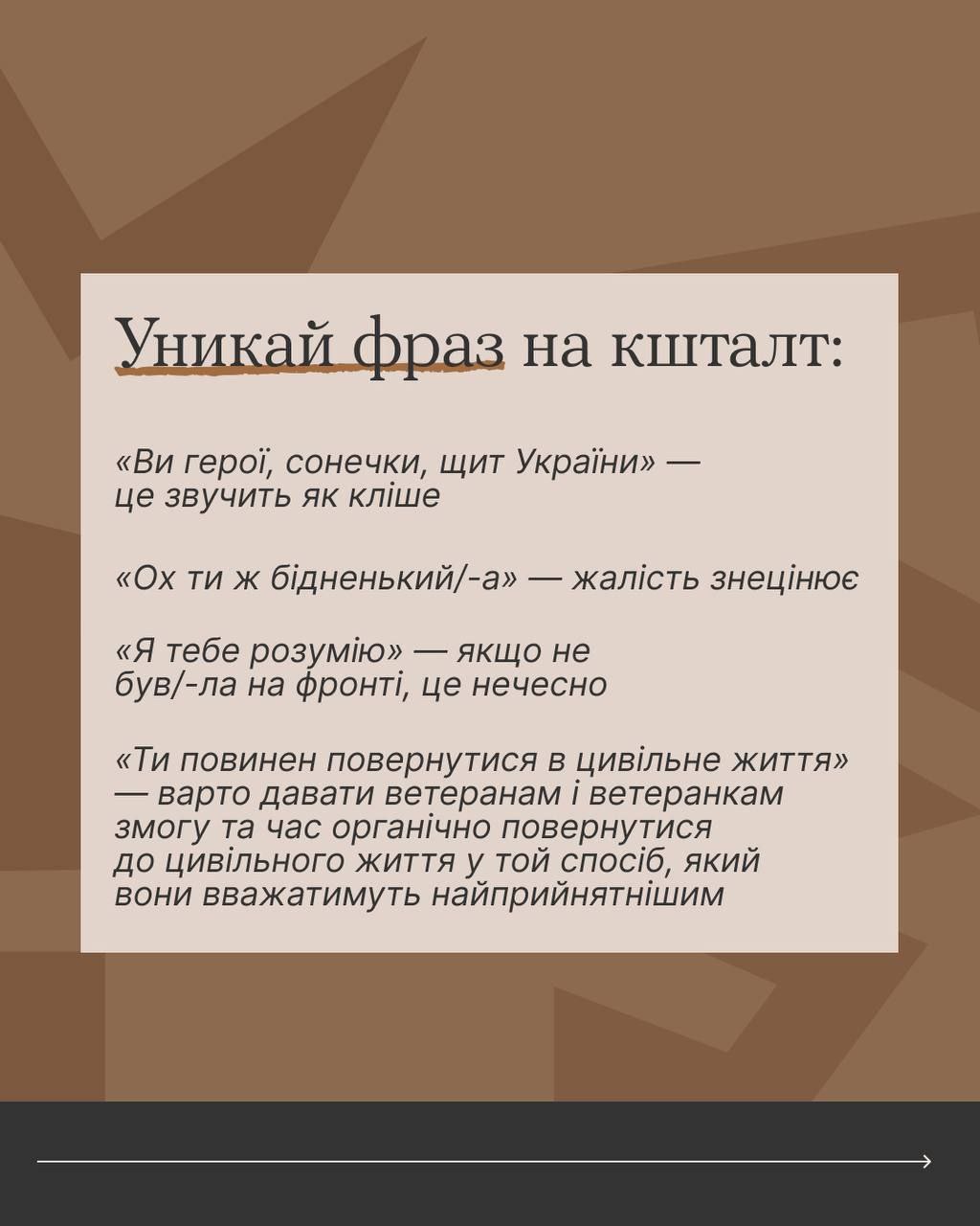 Якщо переживаєш, що в розмові з ветераном чи ветеранкою можеш сказати щось не те — читай карусель.