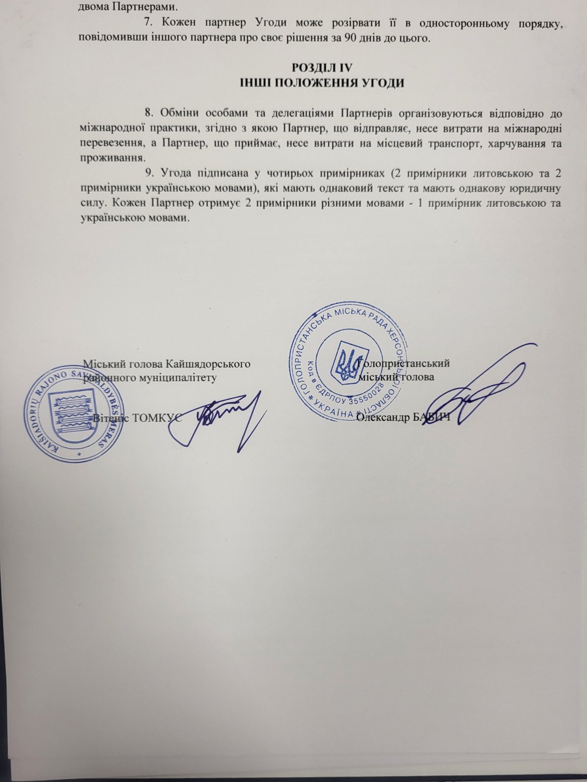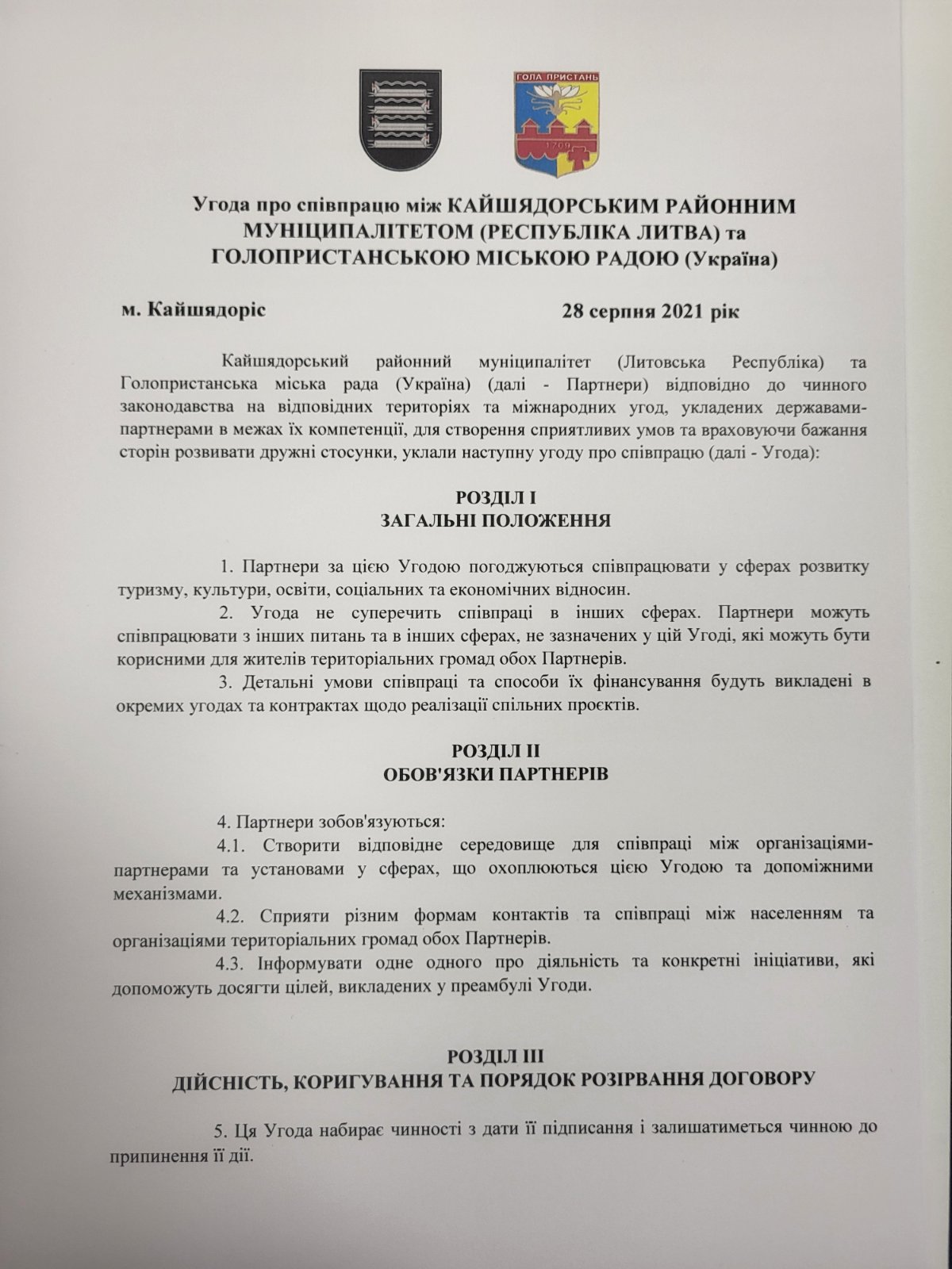 Угода про співпрацю з Кайшядоріським районним муніципалітетом (Республікка Литва)