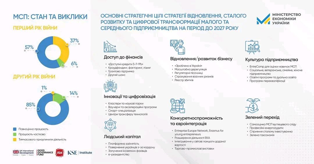 Стратегія МСП має на меті сприяти покращенню бізнес-середовища та інвестиційного клімату, зокрема через: