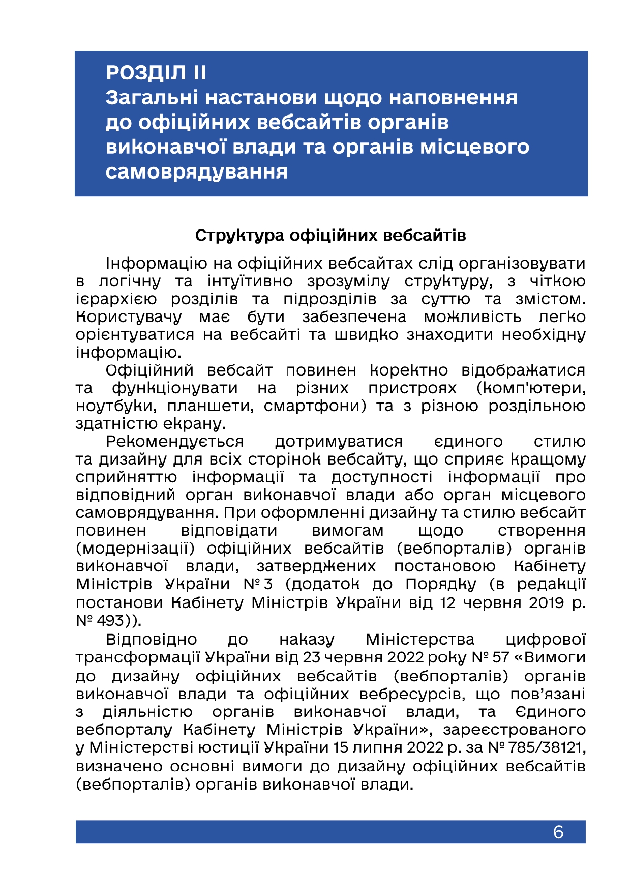 Методичних рекомендацій щодо наповнення офіційних веб сайтів органів виконавчої влади та органів місцевого самоврядування