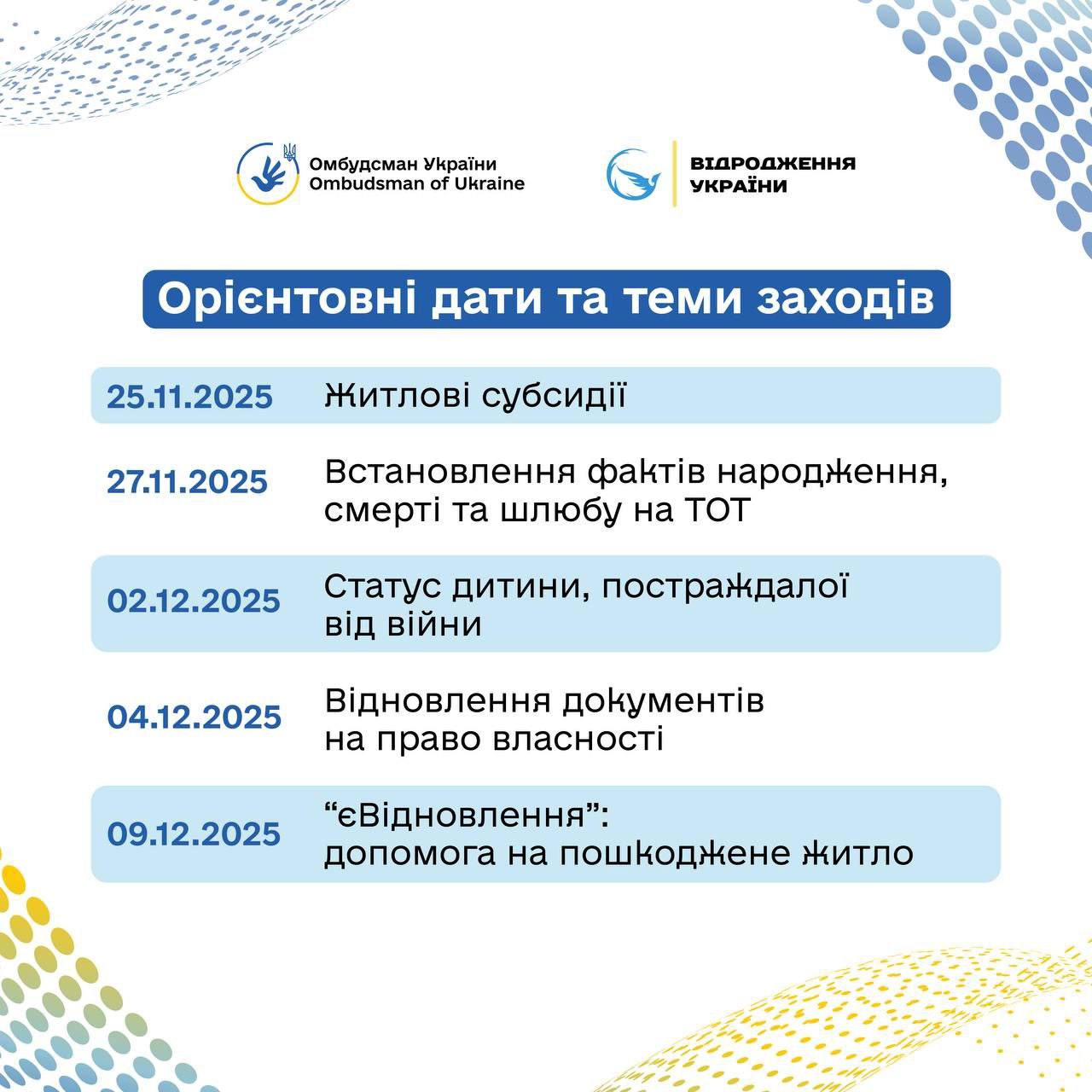 Ініціатива реалізована ГО «Відродження України 2022» спільно з Офісом Омбудсмана за підтримки проєкту Ради Європи «Удосконалення судових та позасудових засобів захисту прав осіб, постраждалих від війни в Україні».