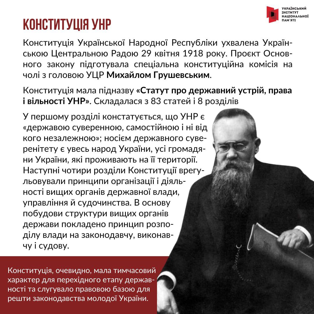 Однак, мало хто говорить про те, що справжній конституційний процес відбувався під час Української Революції 1917-1921 років у різних формах української державності: УНР, ЗУНР, Українська Держава, а також Карпатська Україна.