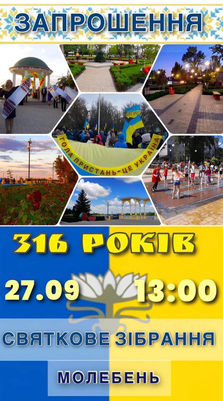 Запрошуємо всіх на святкову зустріч та молебень з нагоди 316-ї річниці заснування нашого міста Гола Пристань