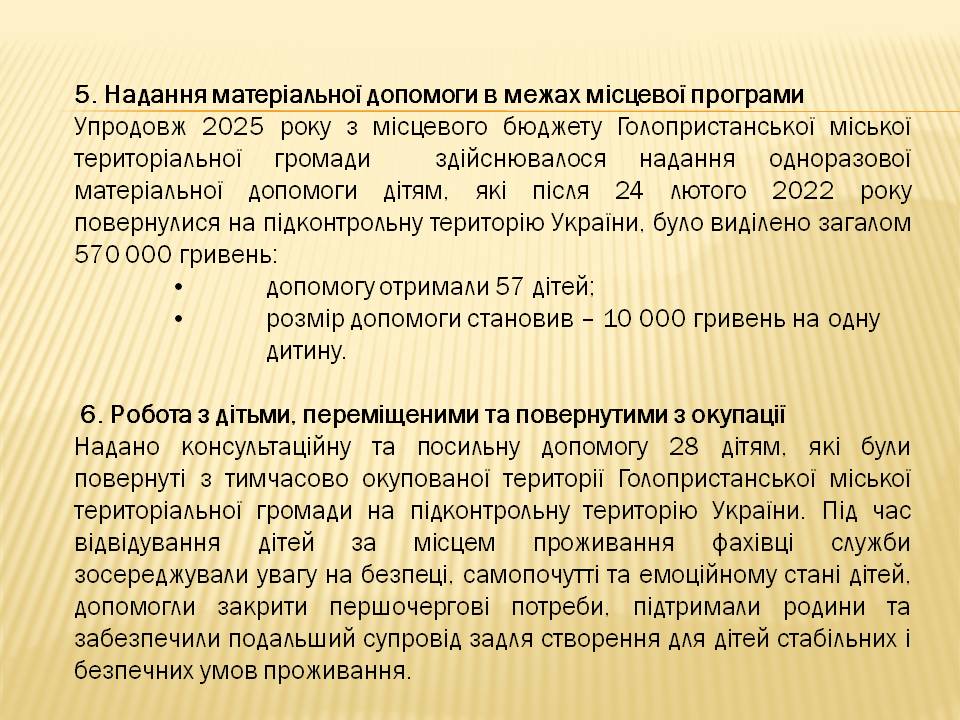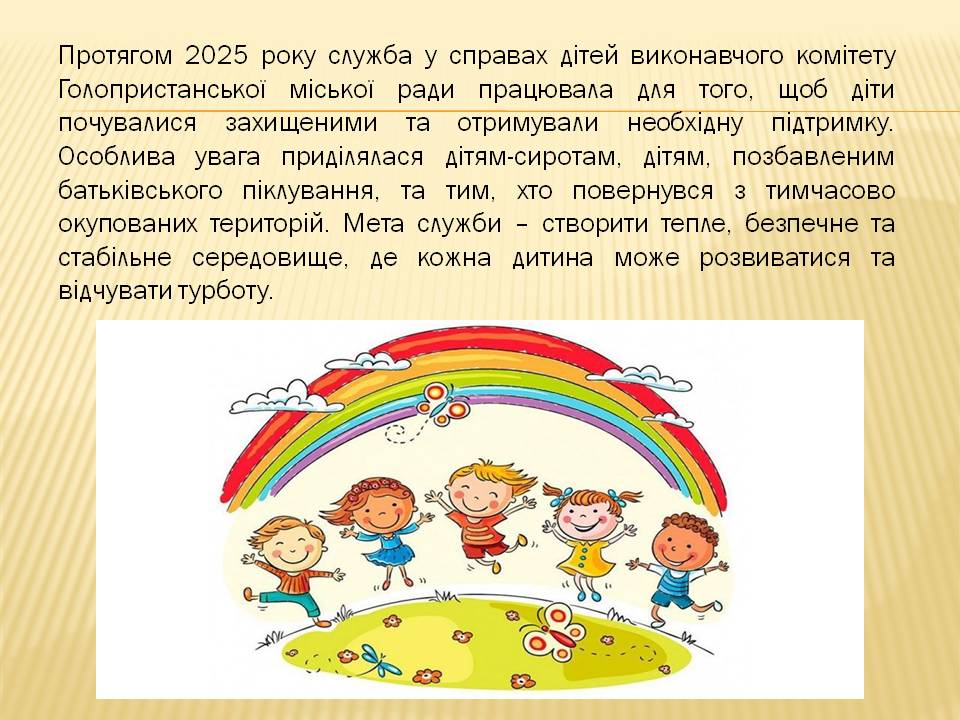 Звіт про роботу служби у справах дітей та соціальної роботи з сім’ями, дітьми та молоддю виконавчого комітету Голопристанської міської ради за 2025 рік