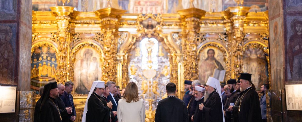 З нагоди Дня Незалежності Президент Володимир Зеленський і перша леді Олена Зеленська взяли участь у молитві за Україну, що відбулася в Софійському соборі