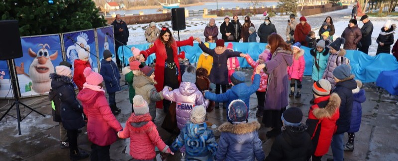 Сьогодні біля головної ялинки міста малеча з батьками зібралися на святкове дійство, присвячене Новому року. Дід Мороз, Снігуронька і відьмочки забавляли дітей, проводили конкурси, водили хоровод, а також частували малечу солодощами.
