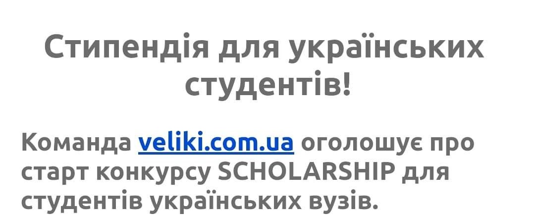 Команда veliki.com.ua оголошує про початок конкурсу для студентів