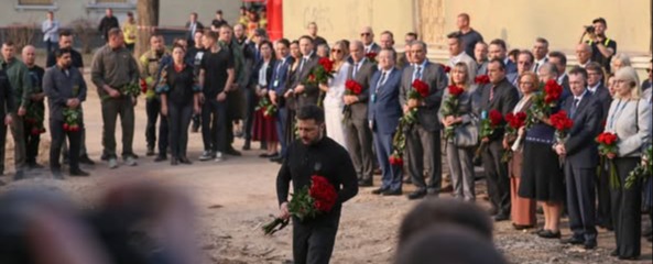 Президент України із дипломатичними представниками держав і міжнародних організацій, які працюють в Україні були на місці удару балістики по Києву