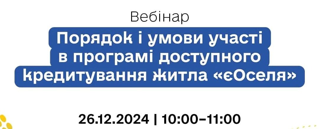 Вебінар «Порядок і умови участі в програмі доступного кредитування житла «єОселя»