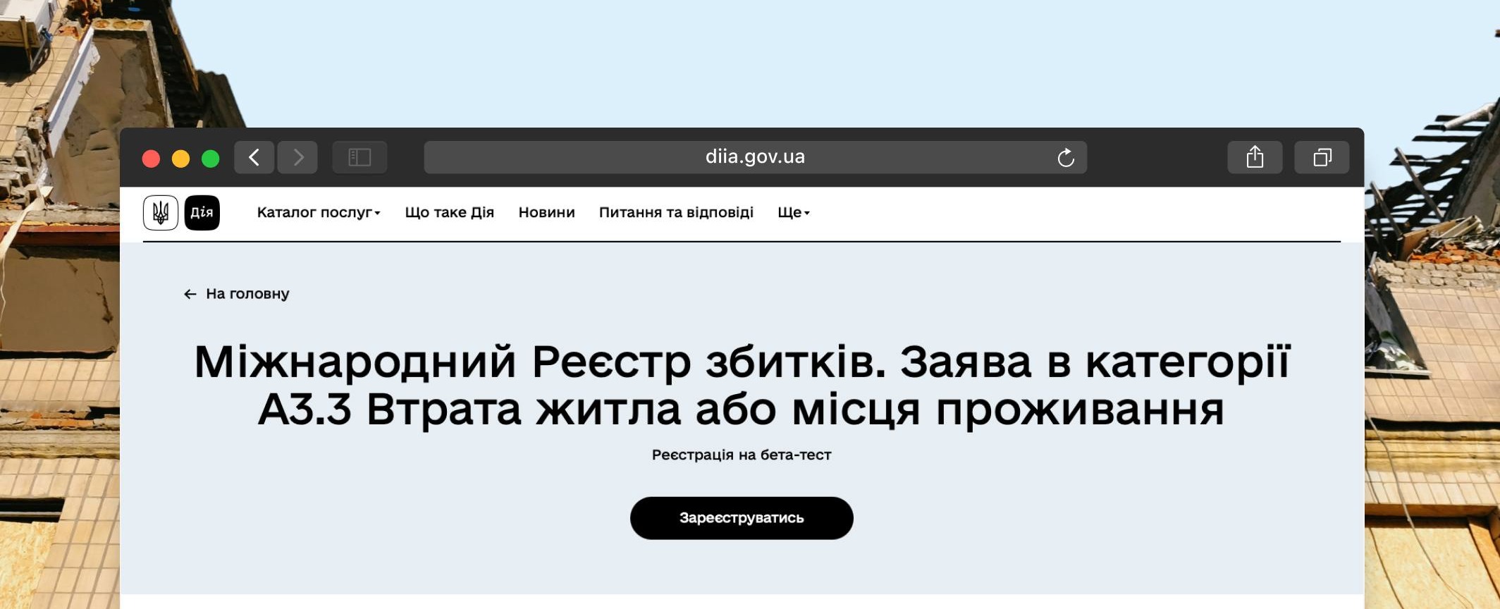 Запустили бета-тест нової категорії Реєстру збитків — подавайте заяву про репарації в Дії
