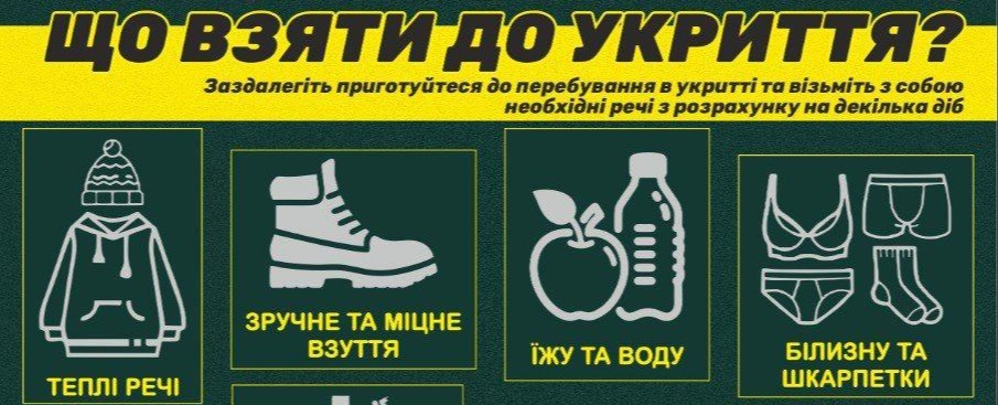 Які речі необхідно взяти з собою для комфортного перебування в укритті