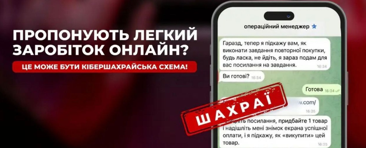 Згідно з даними Кіберполіції, аферисти надсилають повідомлення з пропозиціями легкої онлайн-роботи. Схема полягає у купівлі та продажу на іншому сайті товару, нібито для його популяризації.