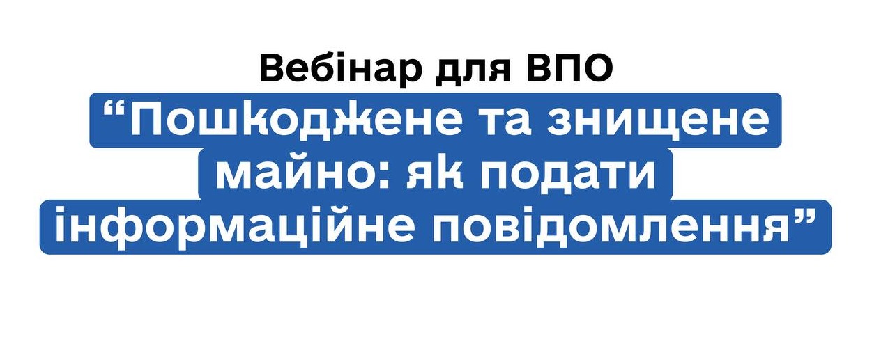 Вебінар для ВПО на тему: "Пошкоджене та знищене майно: як подати інформаційне повідомлення".