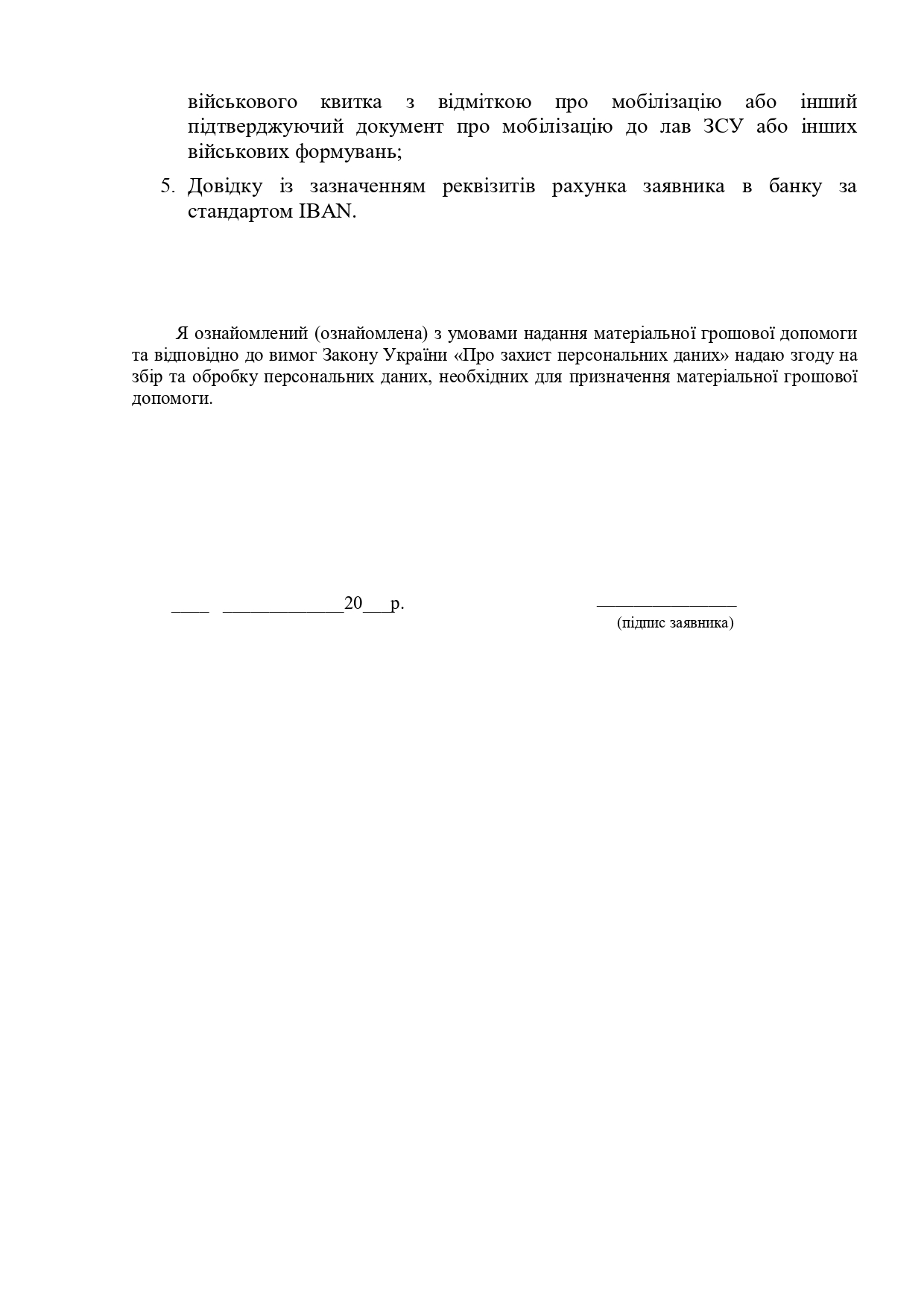 22.02.2026Для отримання одноразової грошової необхідно подати наступні документи: